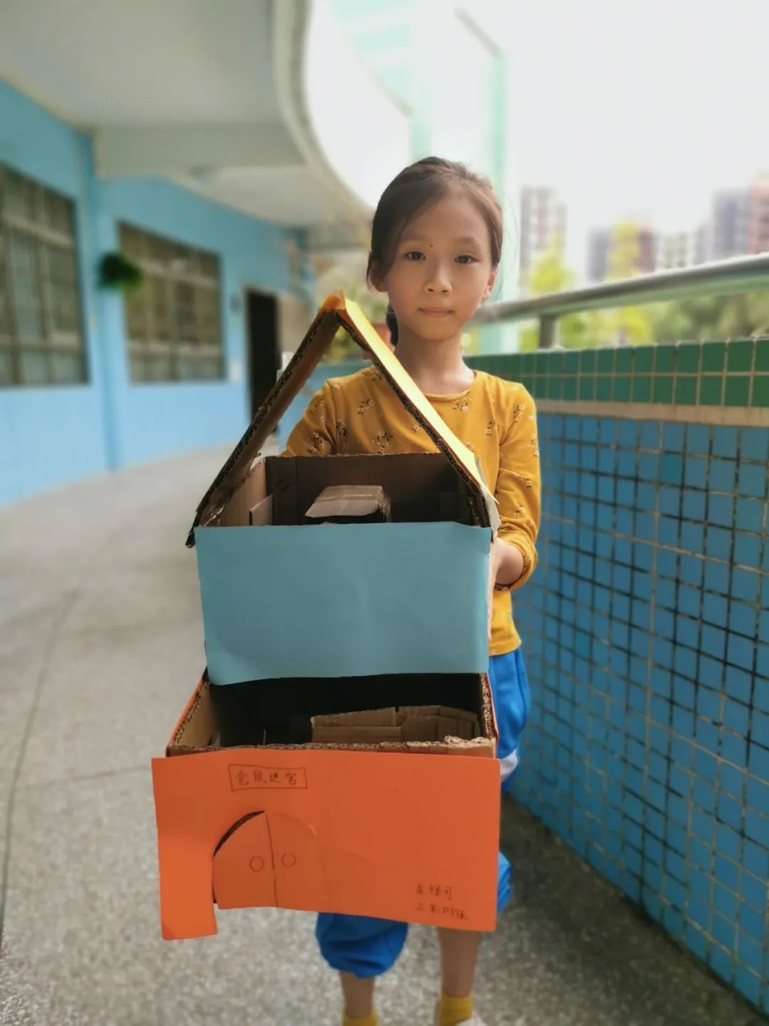 作品介绍:这是一个用废旧纸箱做的仓鼠迷宫,主要功能是让仓鼠有玩耍和运动的空间。有了这个迷宫,我就可以观赏仓鼠活动,也可以和它玩耍,大大丰富了我的课余生活。