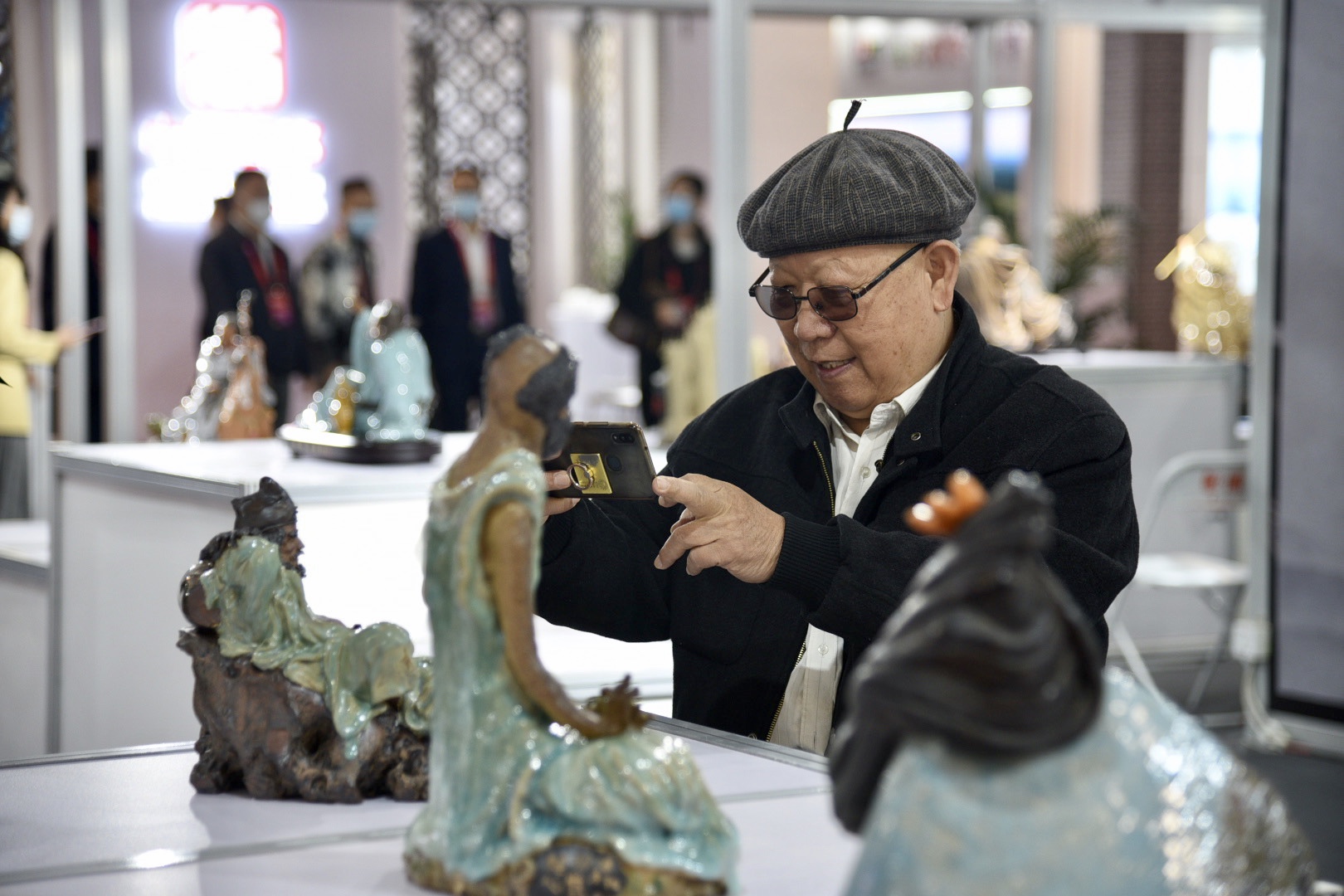 11月7日,2020中国(北京)国际精品陶瓷展览会暨第九届“大地奖”中国陶瓷创新与设计大赛在中国国际展览中心开幕。在1号展厅佛山展馆,62件大师作品在聚光灯下精彩亮相,生动传神的石湾公仔让观众叹为观止。这是佛山市首次组织众多大师作品集体抱团参展。
