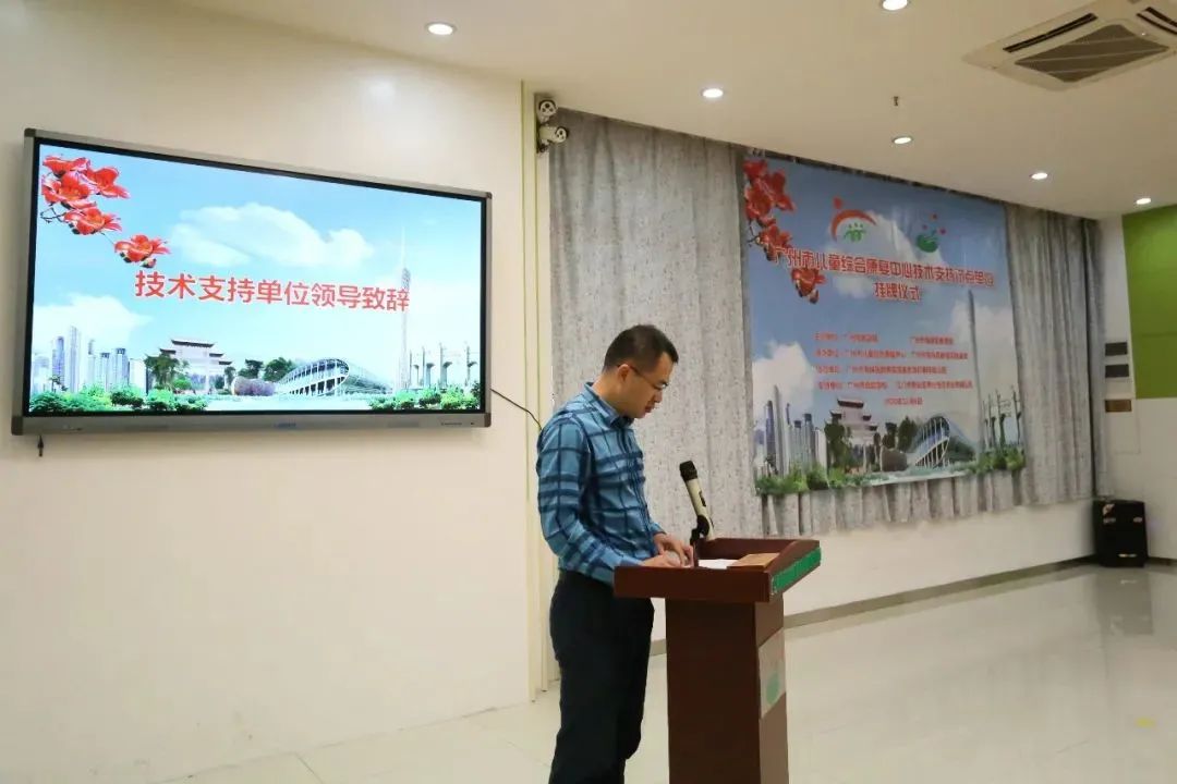 与会领导揭牌。广州市儿童综合康复中心于今年6月成立,在民政部、广东省民政厅及广州市民政局的大力支持下,依托广州市社会福利院和广州市未成年人救助保护中心建设,致力建成一所集养育、治疗、教育、康复、救助、科研、培训七位一体的儿童福利机构。