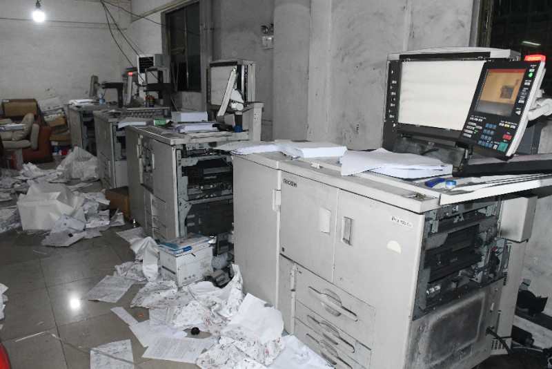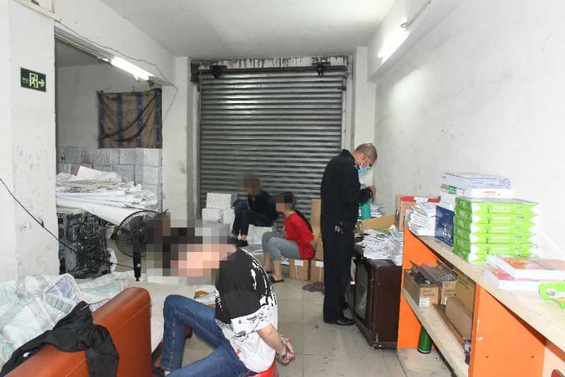 日前,黄岐派出所接到群众举报称,辖区某村居出租屋内有一家印刷小作坊,日常门窗紧闭,形迹可疑。接报后,派出所立即组织警力展开调查。经过走访排查,民警判定,该小作坊很有可能是一个非法复印、销售教辅资料的窝点。