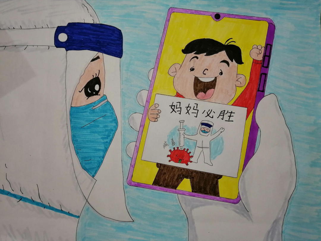 优秀作品:张昕彤《隔离病毒,不隔离爱——给妈妈加油鼓劲》,青少年组