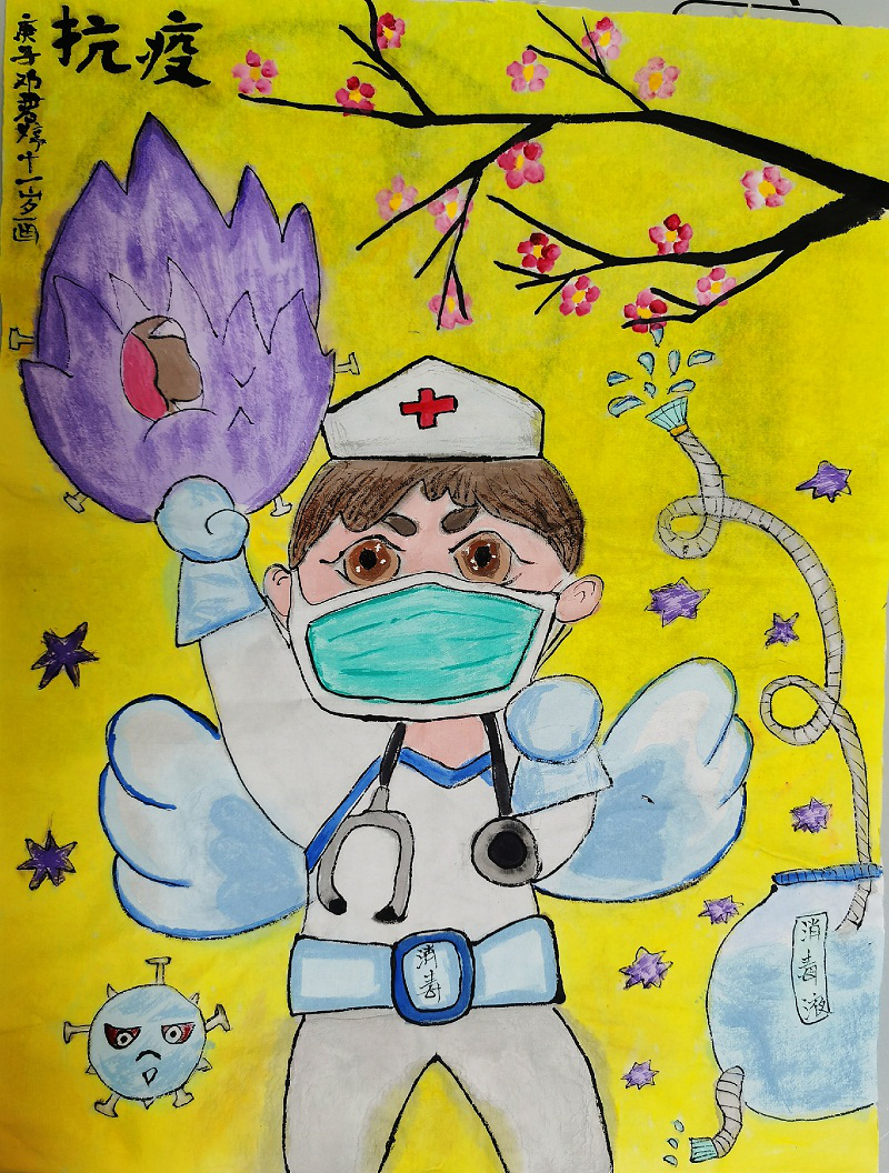 优秀作品:邓君婷《抗疫英雄》,青少年组