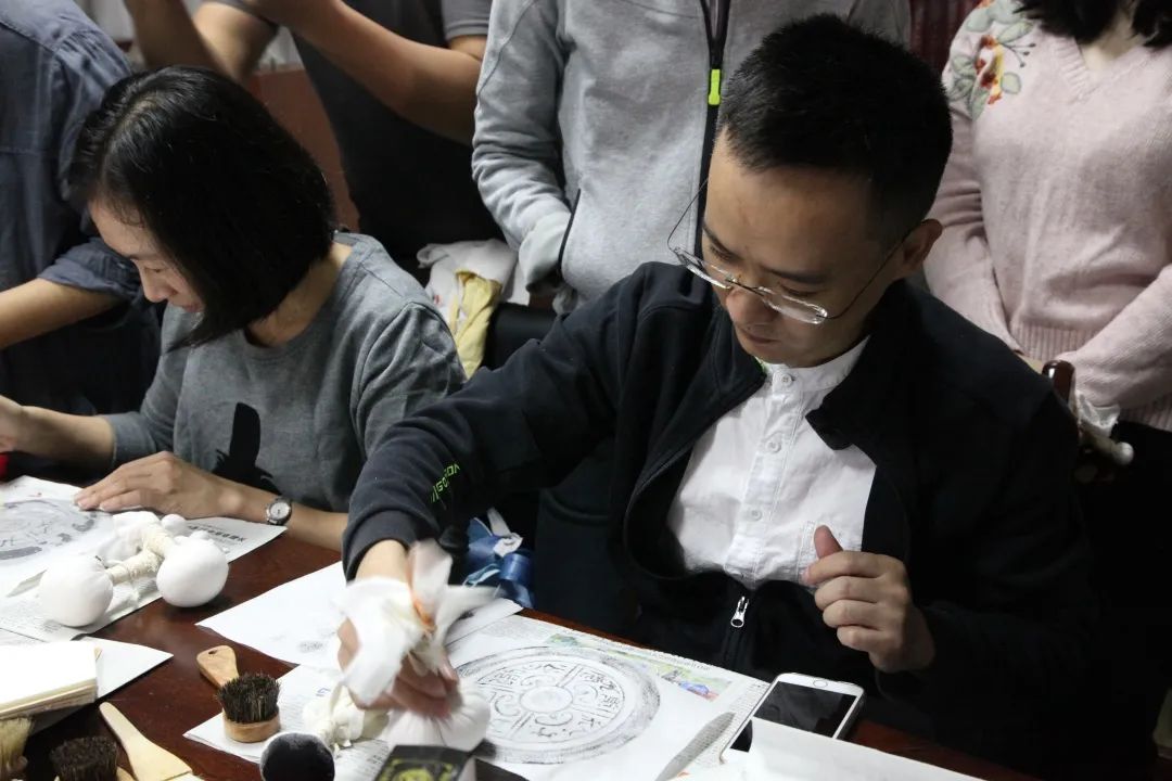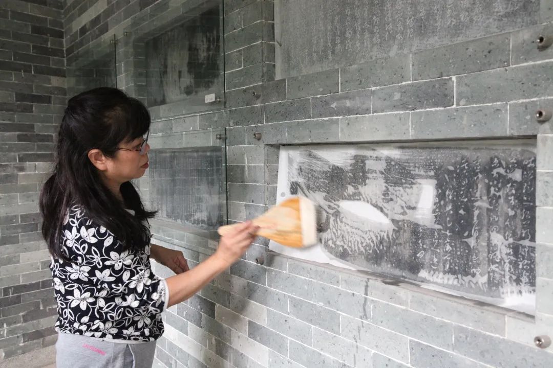 拓包包扎的技巧、墨包沾湿后的浓淡、拓印时的力度掌握……每个环节都会对最终制作出来的拓片造成影响,也正因为如此,每位参与的人员都尽可能小心细致地进行着操作,以期能制作出最好的作品。