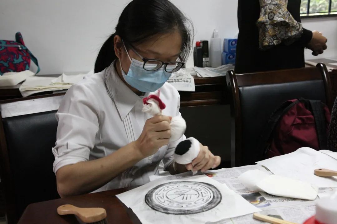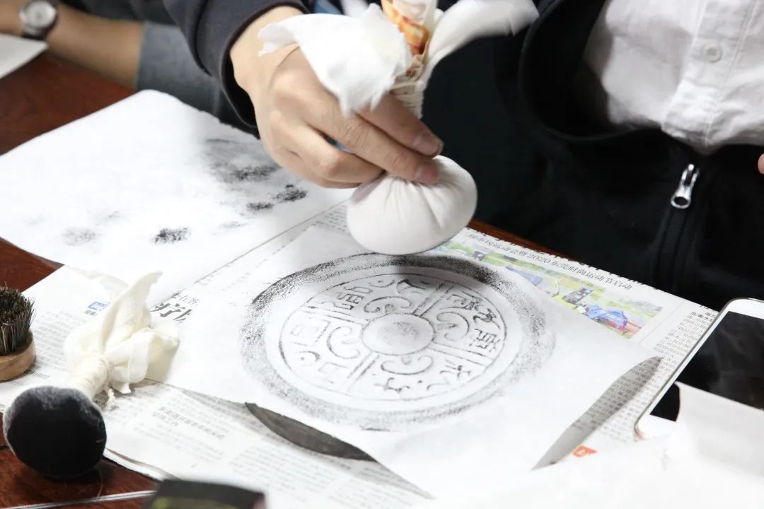 对参与活动的人员而言,拓印是一门从未体验过的技艺,加上此前对拓印历史与意义的了解后,大家对这门技艺更多了深一层的兴趣。经过细致的观摩学习后,大家也纷纷拿起手边的工具,小心翼翼地拓印着眼前的石板。