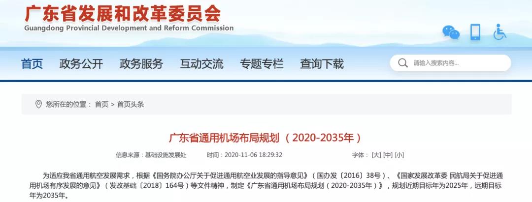 近日,《广东省通用机场布局规划》(以下简称《规划》)出台,广东将在现有9个通用机场的基础上新建48个通用机场。根据《规划》,预计到2035年全省通用机场布点将达到57个,机场密度达到每万平方公里3.2个,服务覆盖所有县级行政单元,机场密度和通用航空运营服务能力接近发达国家(地区)水平。根据规划,广州选址南沙、黄埔和从化。