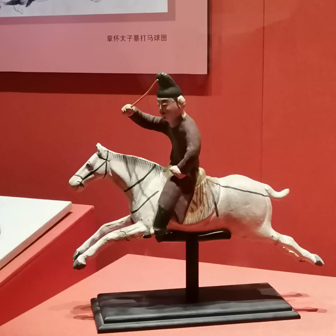 马在古代社会中,长期作为重要的交通工具之用,不同品种、装饰的马和马车,同时也和今天不同档次的汽车一样,是身份和地位的外在标志。唐皇室源出西北,有胡风,特爱养马、骑马、打马球,而且男女都爱。名画《虢国夫人游春图》里就是一大群男女骑着高头大马去春游的场景。李白诗云“妇女马上笑,颜如赪玉盘。翻入射鸟兽,花月醉雕鞍”,写女骑士写得太迷人!