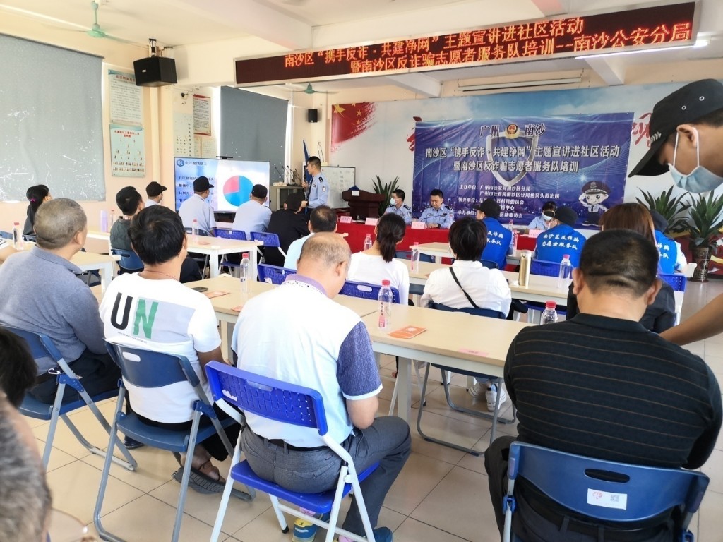 为进一步加强防范电信网络诈骗宣传力度,增强居民防诈意识,最大限度防止人民群众财产安全受到侵害。11月9日,广州南沙警方在东涌镇太石村综合大楼举行“携手反诈·共建净网”主题宣讲进社区暨南沙区反诈骗志愿者服务队培训活动。