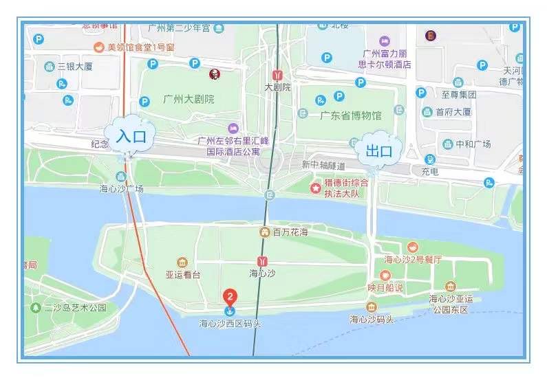 入口位置:天河区临江大道从海心沙亚运公园3号桥检票口(广州农商银行总行大厦对面)验票进场。