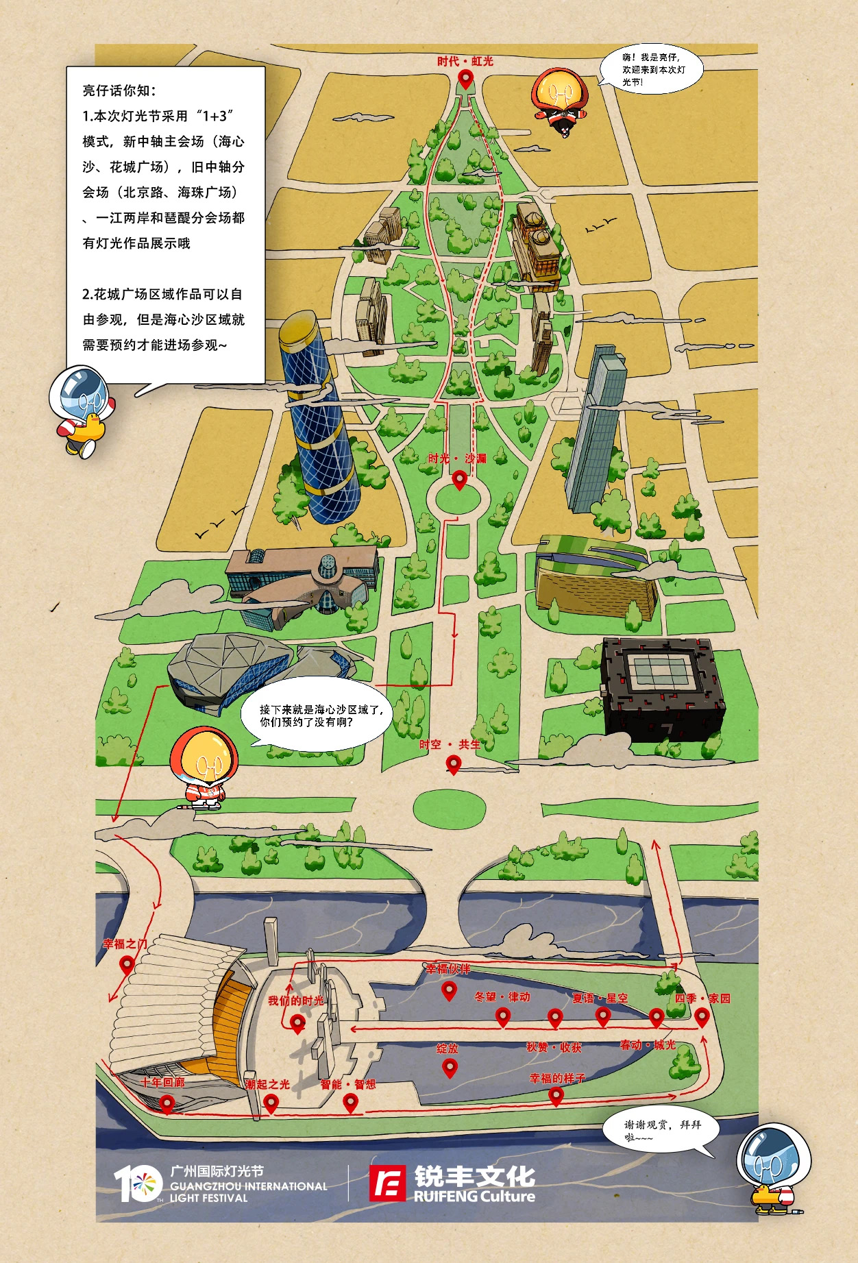 本次灯光节,包括主会场之一的花城广场、旧中轴分会场、琶醍分会场以及一江两岸分会场都将采用自由进场观展模式。而在海心沙主会场将延续以往的预约模式,需要提前预约。