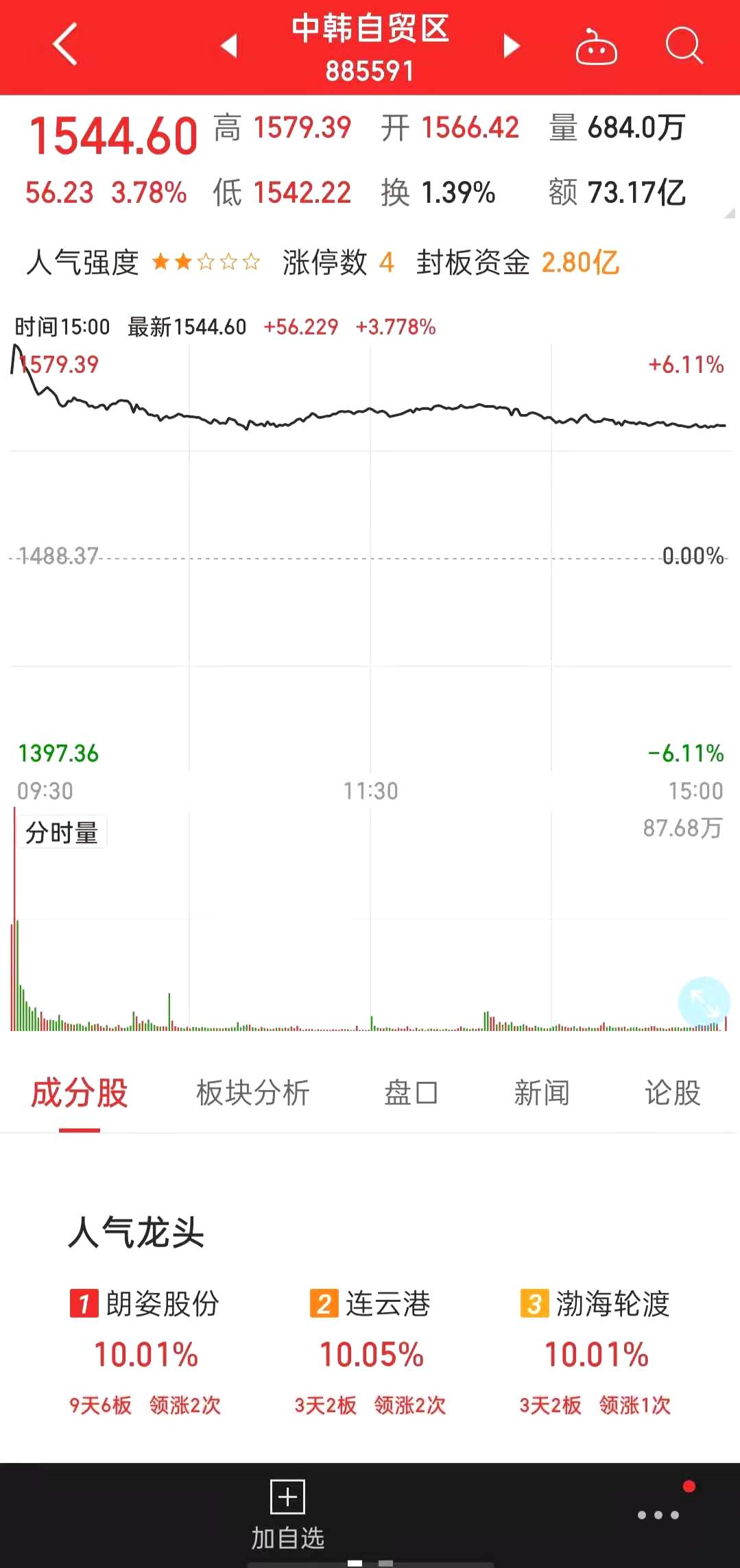 盘面上值得关注的是,中日韩等15国签署RCEP协定,自贸区、港口航运、纺织制造等受益板块走强,连云港、渤海轮渡、中创物流等板块封板,纺织股百隆东方逼近涨停。