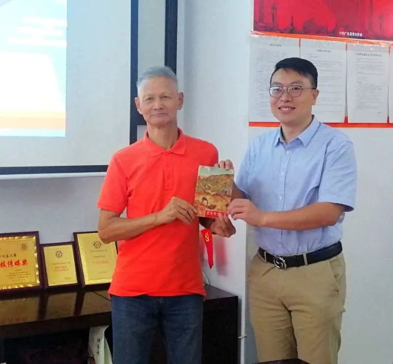广东科技报社向谭鉴洪回赠纪念册。