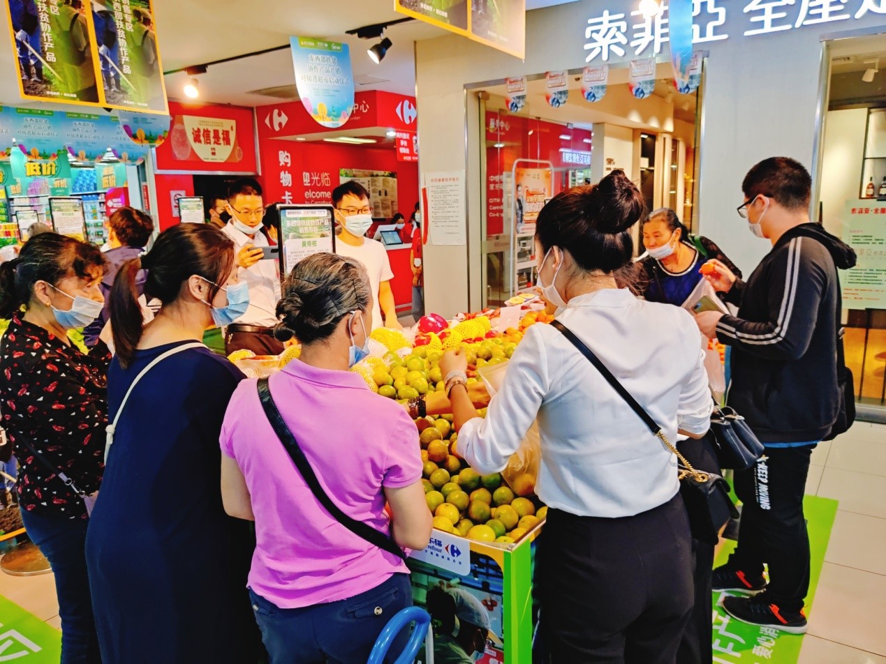 今年疫情期间,各地交通受阻,且零售业受冲击严重,广西大批水果面临滞销困境。得知此消息,家乐福华南区携手供应商通过走访产地、开拓电商等多种渠道,全力帮助果农解决水果销售难的问题并从广西河池市环江县采购90万元沃柑,帮助广西果农解决沃柑滞销问题。河池市是我省深圳市对口帮扶地区,家乐福采购团队去到广西河池环江县,在田间地头查看沃柑的出产数量、甜度。获悉货车运力不足,家乐福华南区团队与供应商连夜在当地寻找符合资质的物流团队,力求保证商品能够尽快到达卖场。