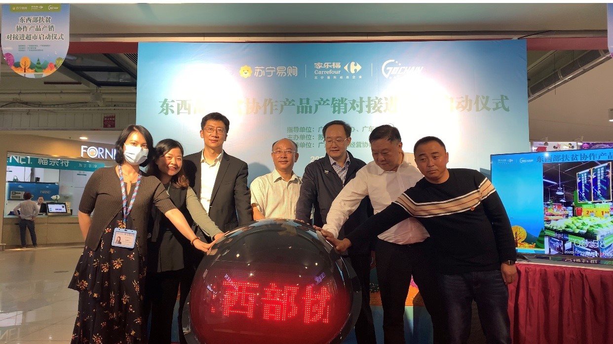 2020是国家脱贫攻坚收官之年,为响应国务院扶贫办号召,家乐福计划长期设置“东西部协作扶贫产品销售专区”,销售20余款扶贫商品,覆盖生鲜、干杂等多品类。11月17日下午,在广东省商务厅、广东省扶贫开发办公室、广东省连锁经营协会的指导与支持下,家乐福在广州员村店举办了东西部扶贫协作产品产销对接进超市启动仪式,广州市商务局、广州市协作办公室等参与其中。