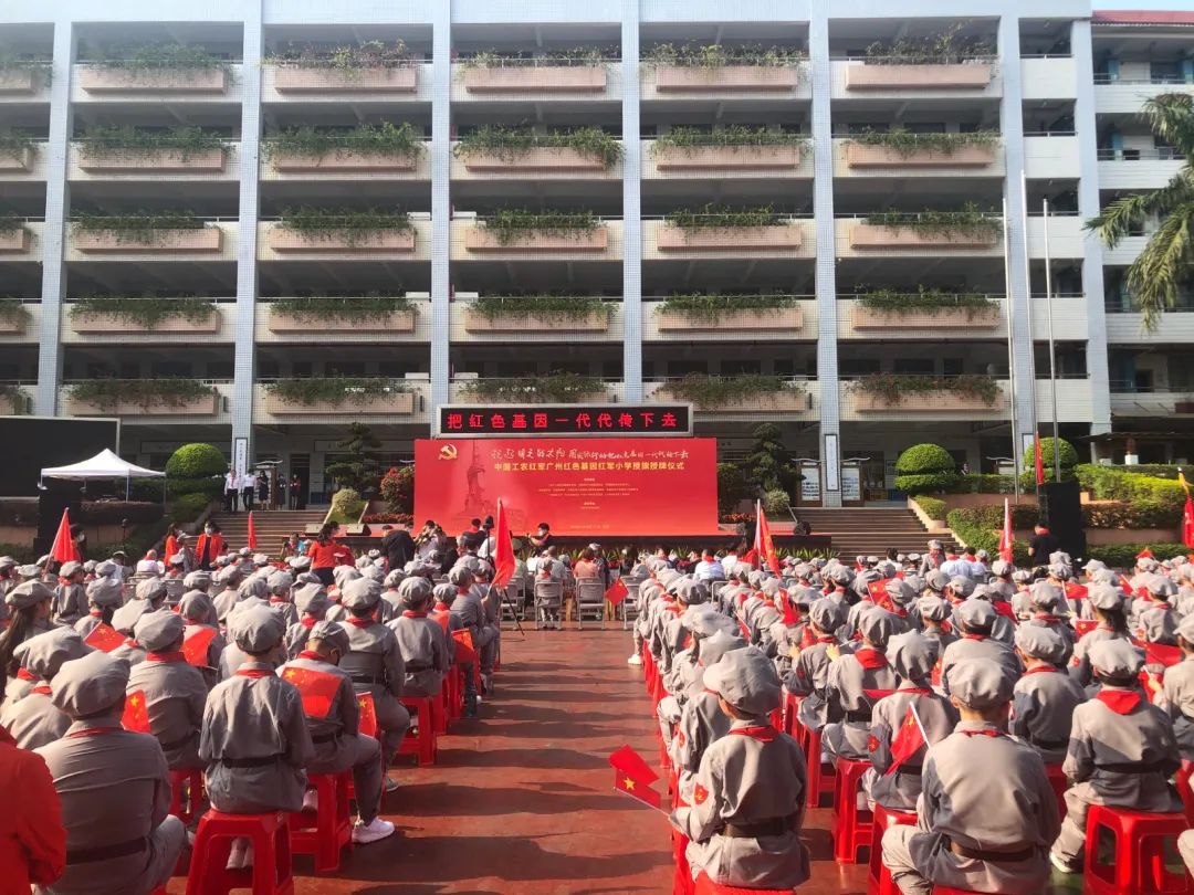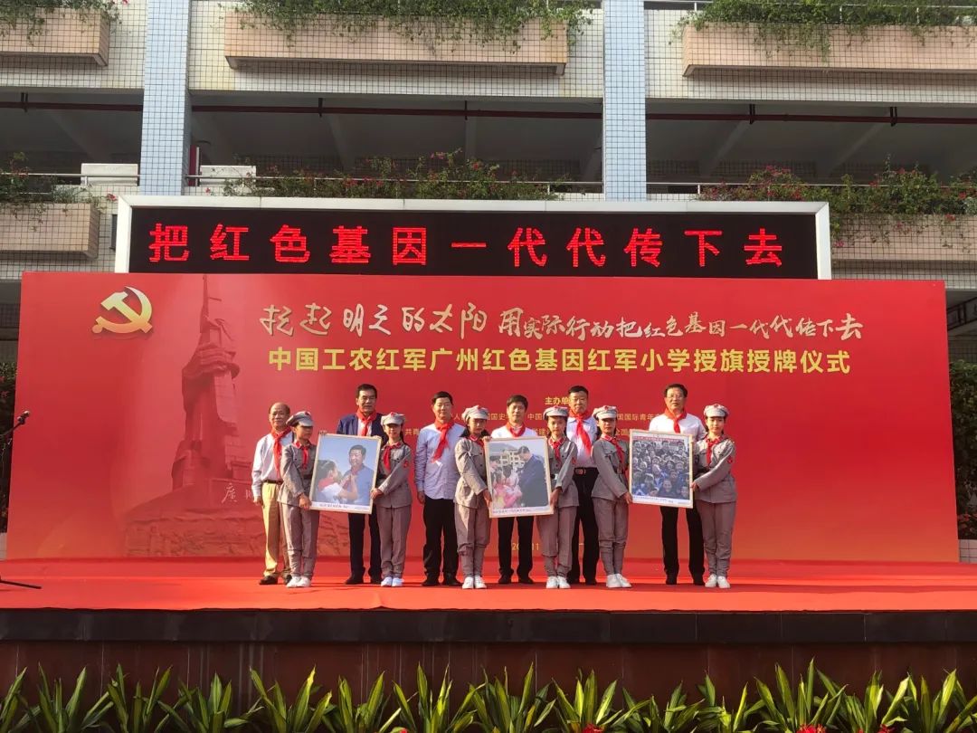 仪式上,方强秘书长宣布成立“中国工农红军广州红色基因红军小学”的决定,向棠下小学授予广州红色基因红军小学的旗帜和牌匾,同时转赠曾飘扬在天安门广场的国旗、“习近平总书记和少先队员在一起”的挂像,习近平总书记对红军小学重要指示题词牌、红军小学建校宗旨。全国红军小学建设工程理事会还代表国家体育总局冬季奥委会向广州红色基因红军小学赠送奥运会金盘。