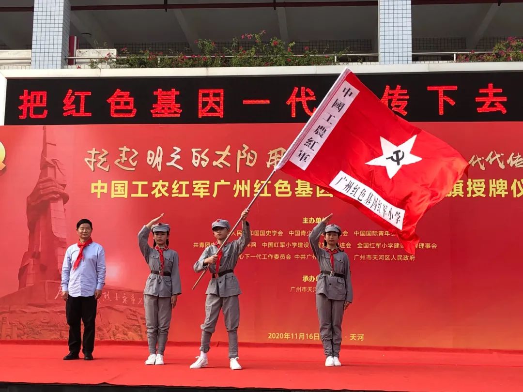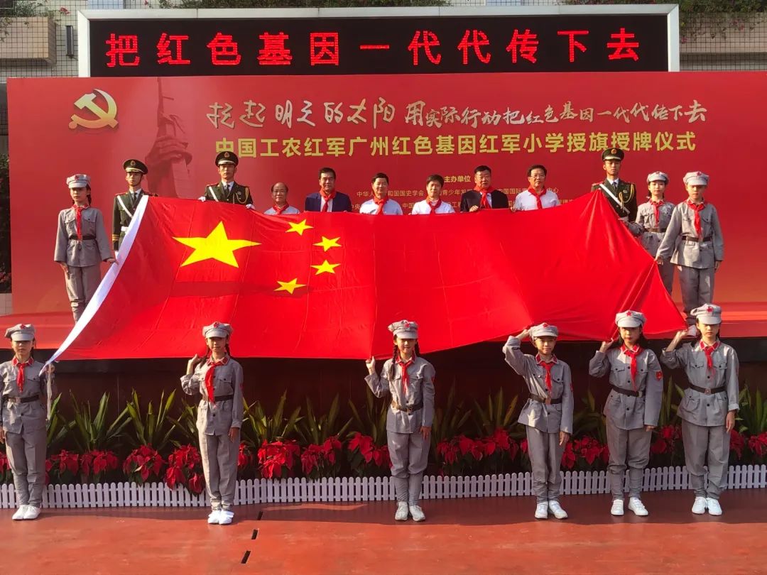 红旗飞扬歌嘹亮,星火燎原铸军魂。11月16日下午,中国工农红军广州天河红色基因红军小学授旗、授牌仪式在广州市天河区棠下小学隆重举行,十二届全国政协委员、中国人民解放军原总参四部部长万晓援将军,全国红军小学建设工程理事会副理事长兼秘书长方强等全国红军小学建设工程理事会领导出席授牌仪式。