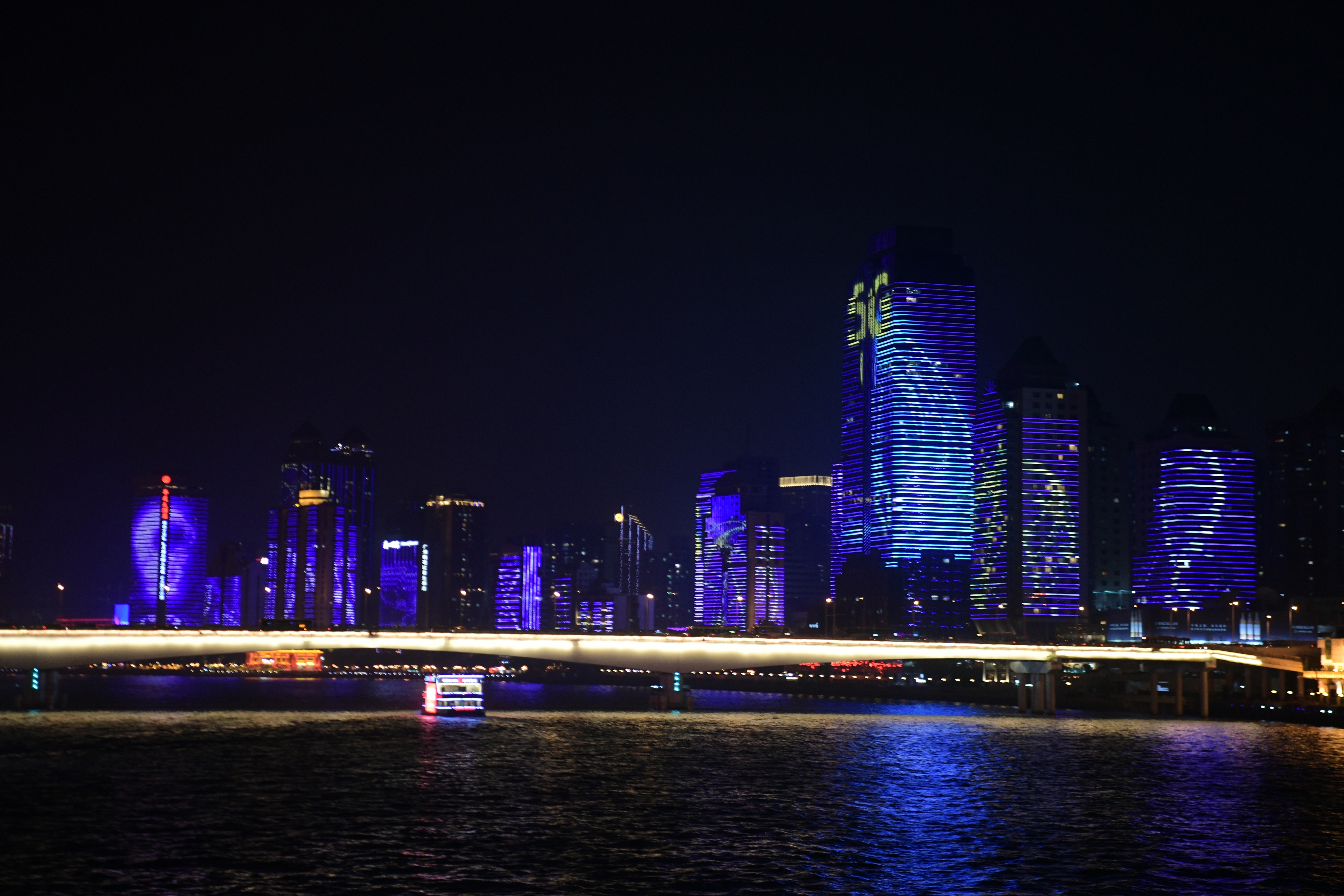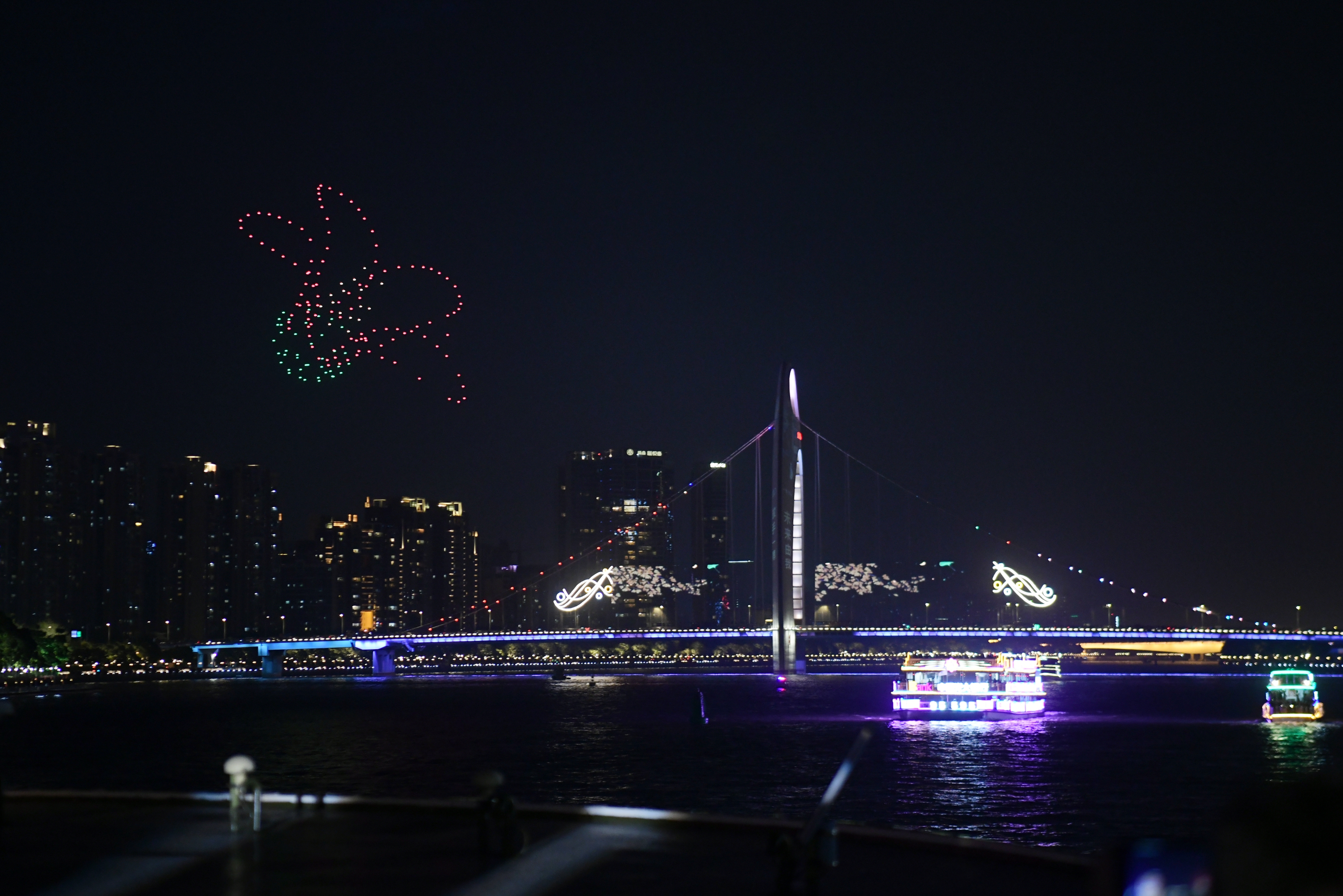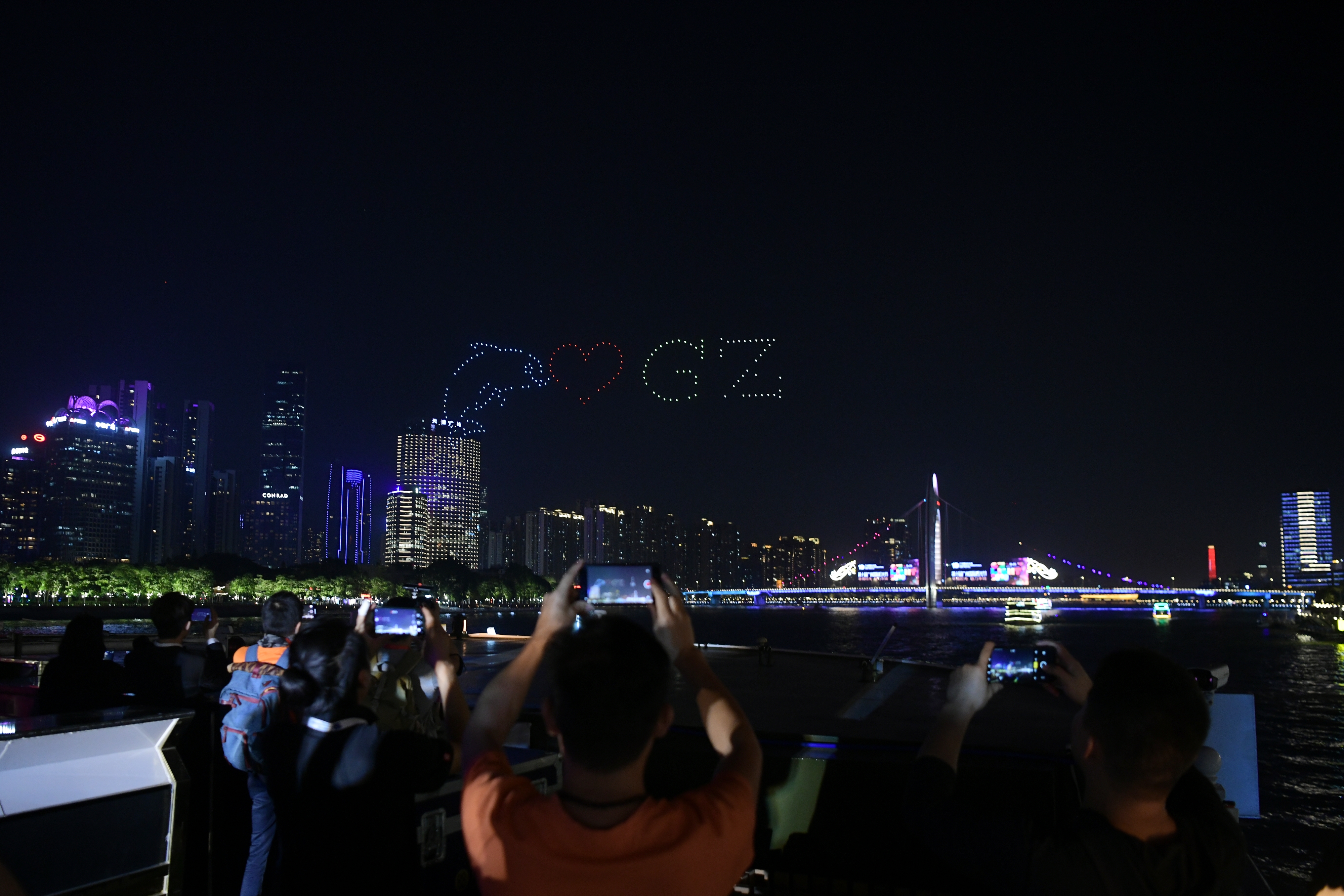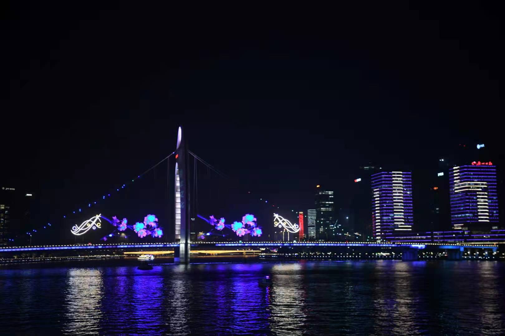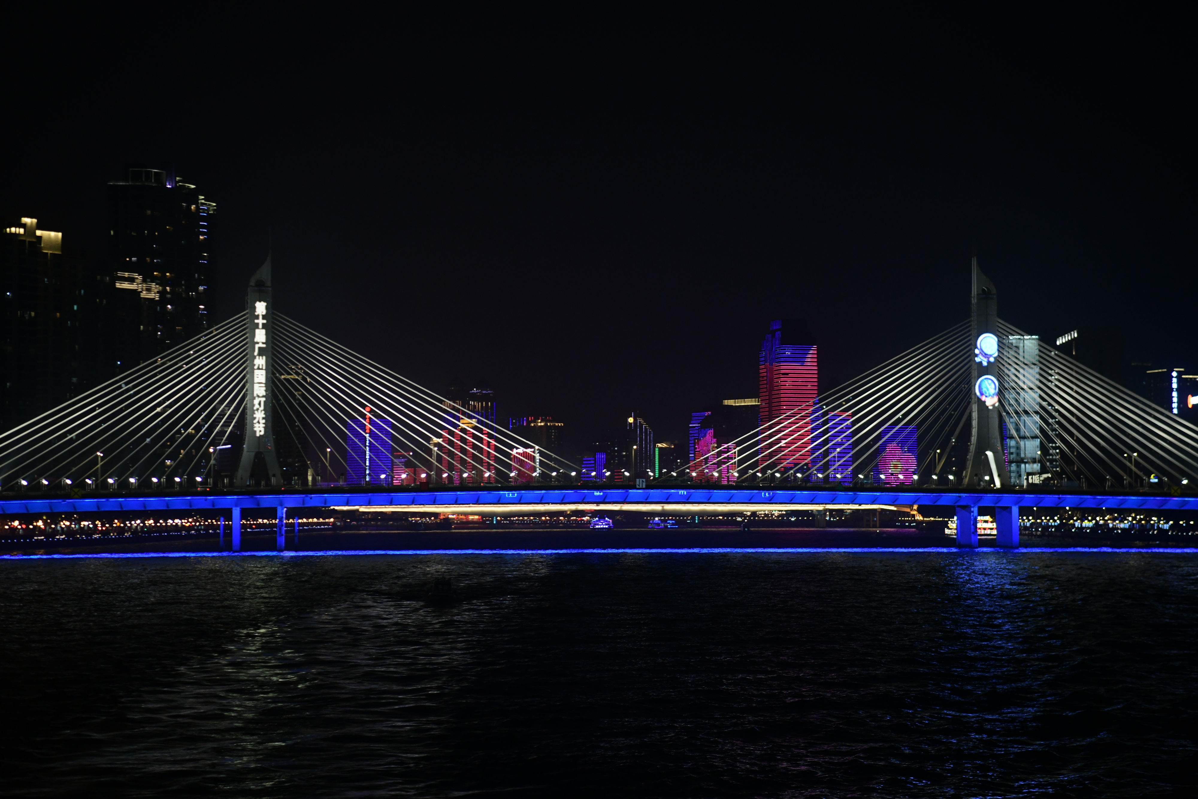 4.一江两岸分会场(海珠桥、海印大桥、猎德大桥、媒体港):2020年11月18日-11月29日18:30-22:00 (沿江24栋建筑群)18:30-21:30