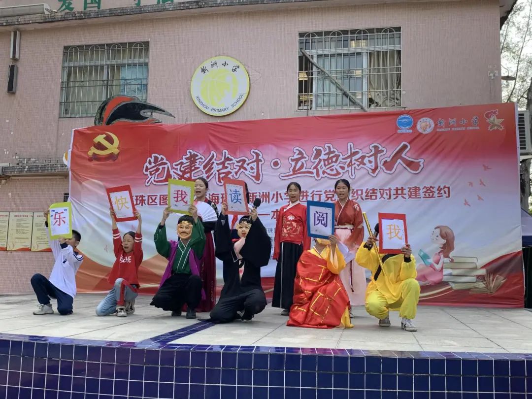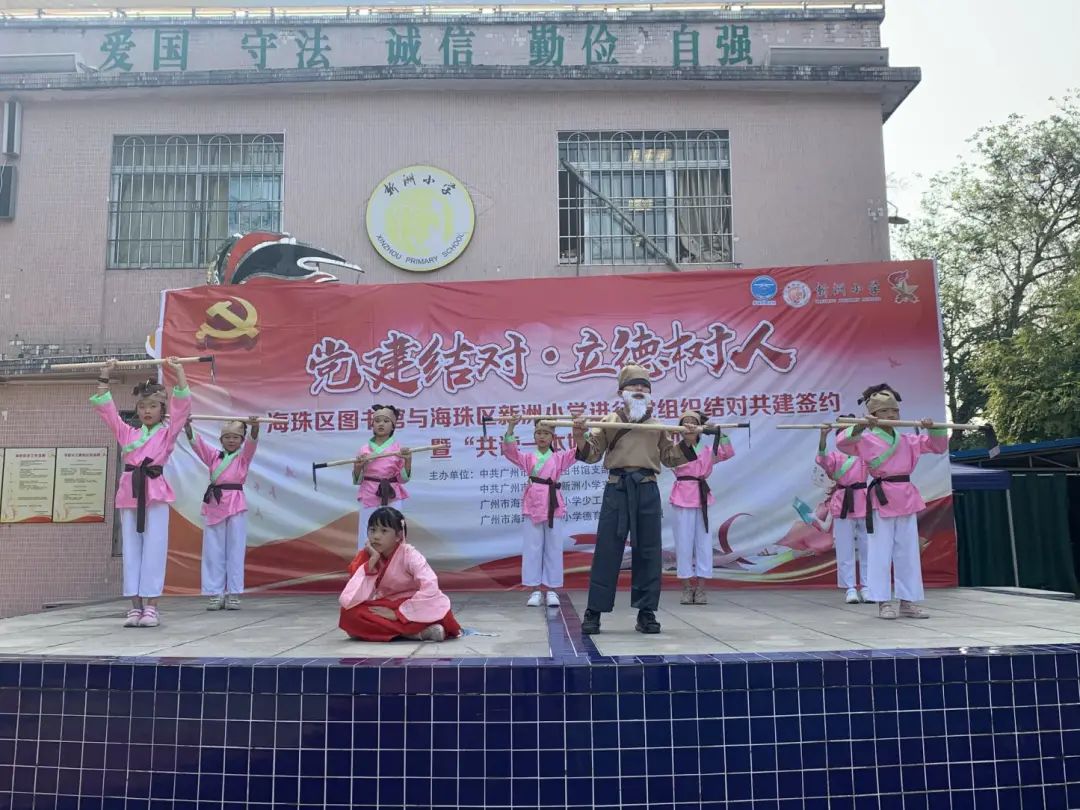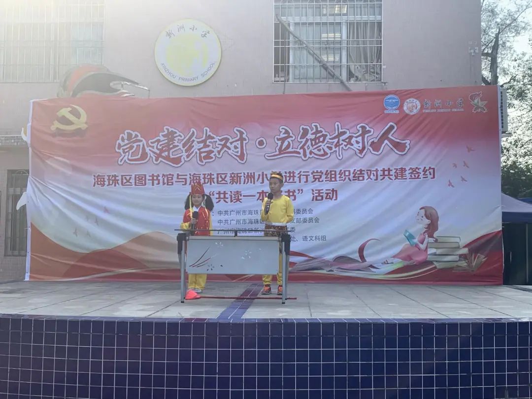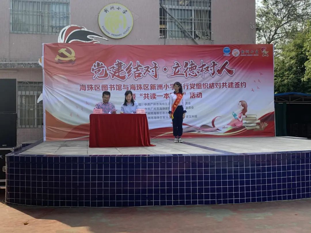 11月16日,海珠区图书馆与海珠区新洲小学开展了党组织结对共建签约暨“共读一本好书”活动。海珠区教育局调研员黄韵华,海珠区文化广电旅游体育局机关党务专职副书记董春雷,海珠区图书馆相关领导,新洲小学党支部书记林道英等一同参加本次活动。