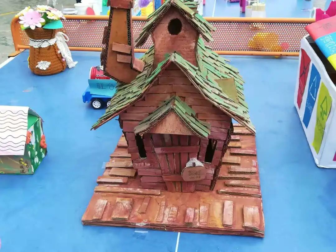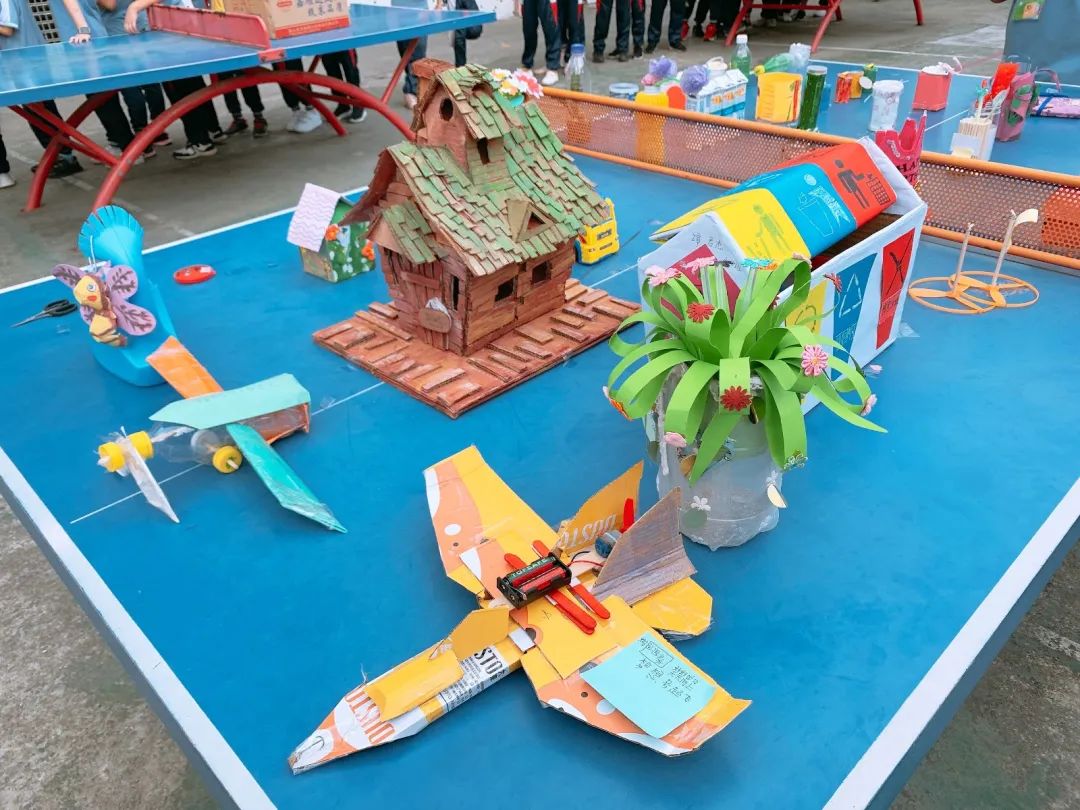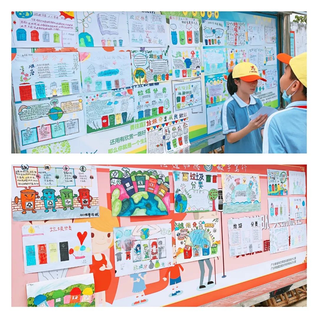 棠福小学校园内分成了手抄报展览区、绘画展览区、作文展示区及变废为宝DIY展览区,学生们有序参观的同时,由讲解员在旁向同学们讲解环保作品的内容和形式、垃圾分类的意义以及四类垃圾的处理方式。