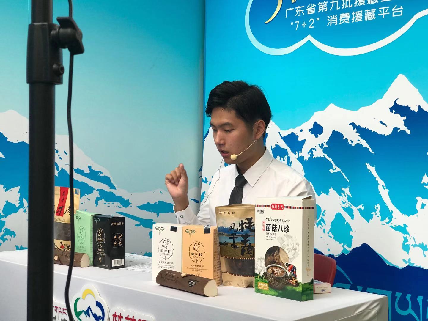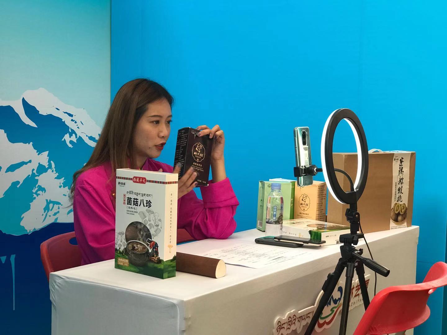 “各位宝宝们,今天像个养生场,我手中的西藏菌菇八珍汤料包、茶叶等都是非常适合广东人煲汤、祛湿的佳品。”活动现场,网红主播正面向镜头介绍着来自3000公里之外西藏林芝的各类特产,以及当地的风土人情与旅游资源。