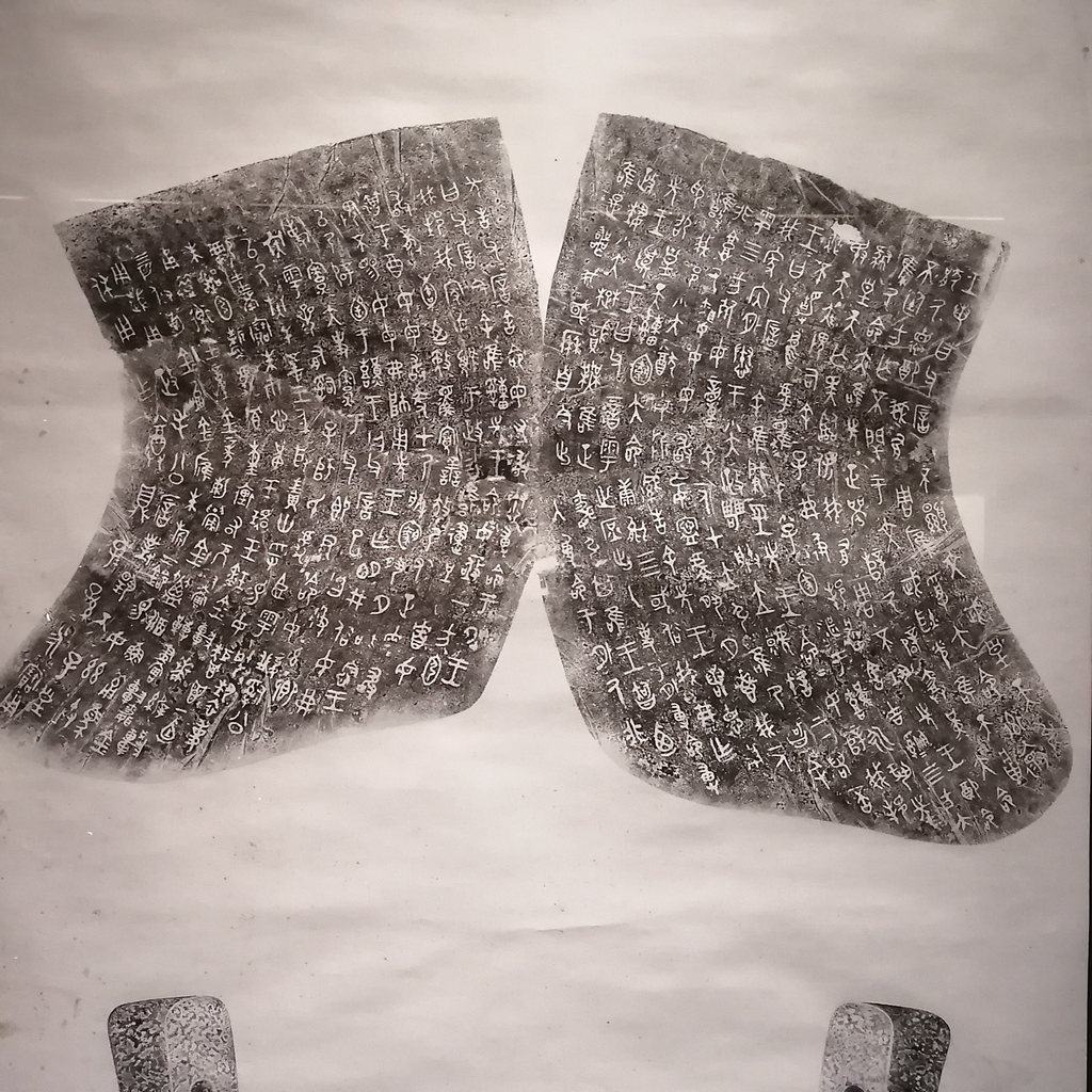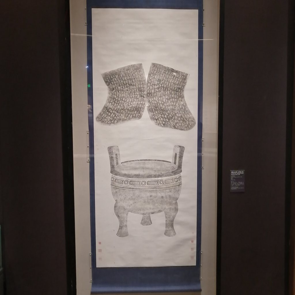 毛公鼎传清道光末年陕西岐山出土,鼎内有铭文497字,为目前所见铜器长铭之冠。内容叙事完整,记载详实,被誉为“抵得一篇《尚书》”。展览中展出的《毛公鼎全形拓初拓》是广东省立中山图书馆的藏品。