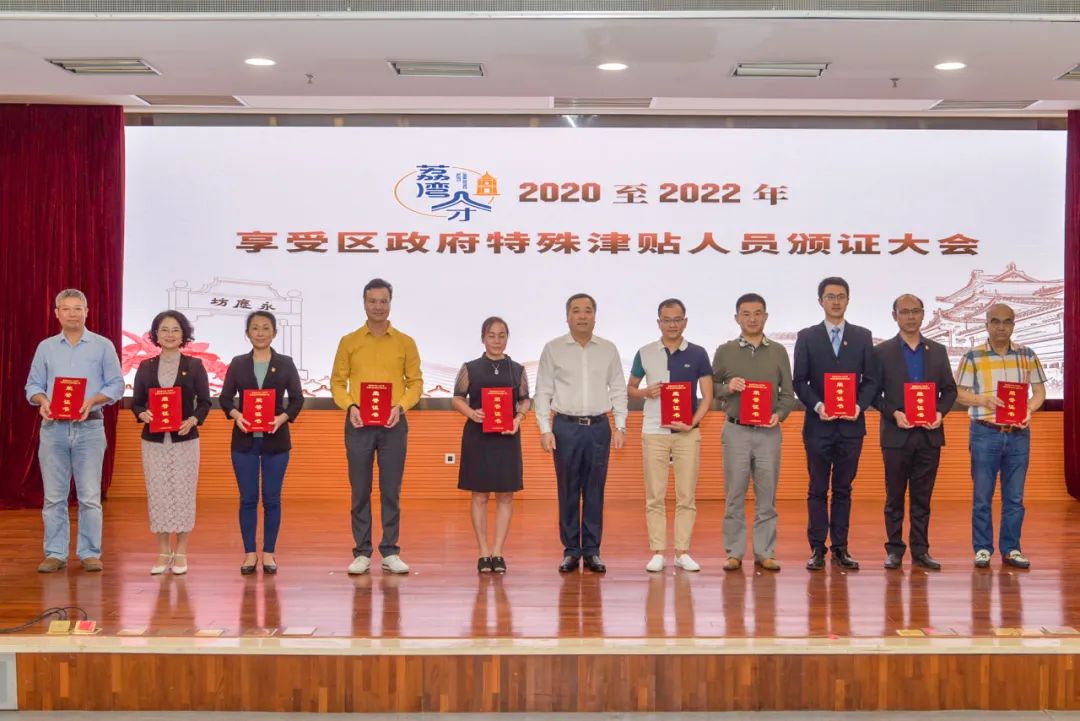 11月20日上午,荔湾区2020年至2022年享受区政府特殊津贴人员颁证大会在荔湾区会议中心举行。来自荔湾区教育、卫生、“三雕一彩一绣”等文创类、粤港澳大湾区建设及地区协作等新兴特色板块类和区重点企业多个领域的数十位专家、精英齐聚一堂,在此接受荔湾区颁发的特殊津贴人员证书,为荔湾区发展建言献策。