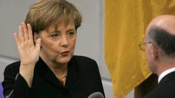 △2005年11月22日,首次当选德国总理的默克尔宣誓就职