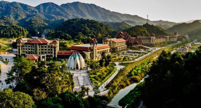“经律论文化旅游小镇·森林温泉世界”以养生、休闲度假、旅游服务为一体,单体设计主要采用东南亚地区建筑风格。景区充分利用已有的优质地热温泉资源、优美清凉山景,完整诠释自然之美。