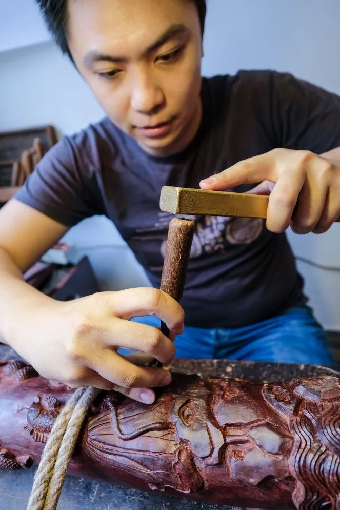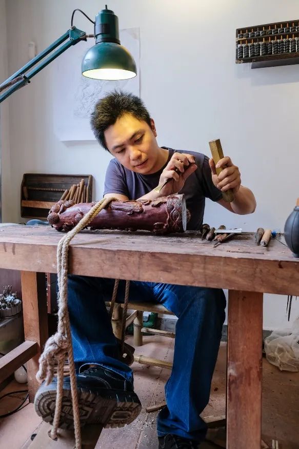 作为新生代的广州木雕传承人,他希望更多人能关注广州木雕文化,在他的工作室,也能看到许多木雕工艺品融入许多现代潮流元素,吸引年轻人的目光。