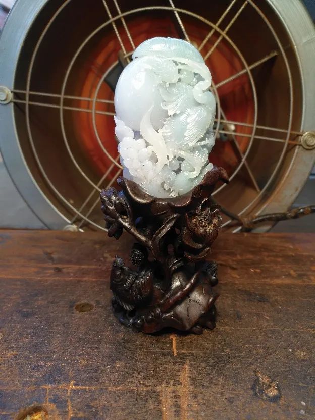 和已故广州玉雕大师高兆华合作的作品(底座由何子鑫创作)。