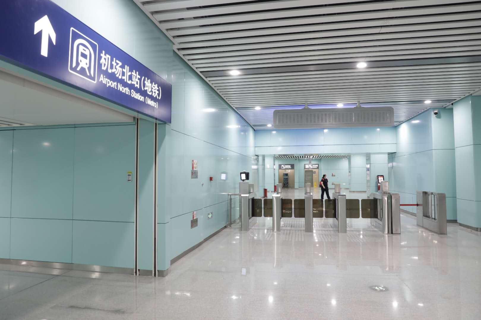 如选择在白云机场北站换乘地铁,仅需5分钟。旅客从白云机场北站站台层下车,经过向上出站扶梯前往负一层出站大厅,经出站闸机后,通过与广州地铁三号线机场北站的站内便捷换乘通道前往地铁乘车。