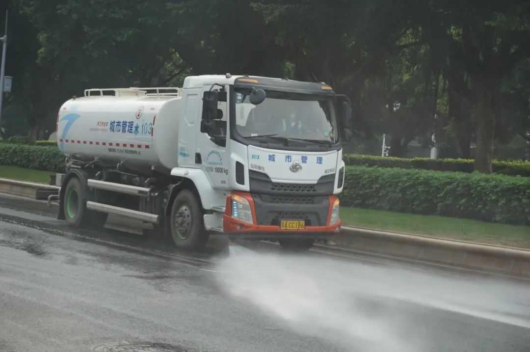 在陈德燕行驶过后不久,谭赞添也驾驶着洒水车经过了广州香格里拉酒店门口,大片的水花压住了逐渐升温的路面。49岁的谭赞添是海珠区本地人,已拥有27年驾龄。在多年的工作中,最让他印象深刻的大型活动是广州马拉松。“广马的时候,我们经常凌晨2、3点就要开始工作,中午没有休息,不间断地巡回保洁。”谭赞添说,每当海珠区举办大型活动,自己都有一点紧张感,觉得身上的担子重了,也会下决心维护道路的干净整洁。
