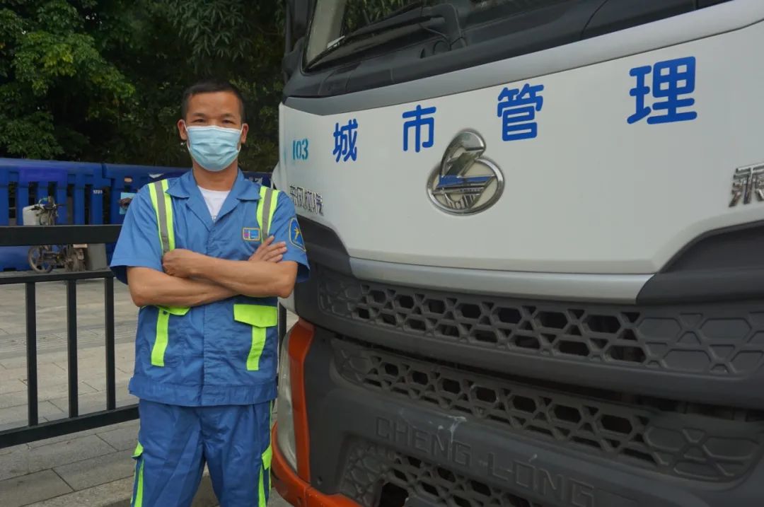 今年52岁的陈德燕来自茂名高州,操作扫路车已有6年时间了。曾经跑惯长途的他,如今对于道路清扫已经驾轻就熟。对于大型活动的开展,他是十分高兴的,“各行各业慢慢复苏,各项活动恢复正常,这是好事。”