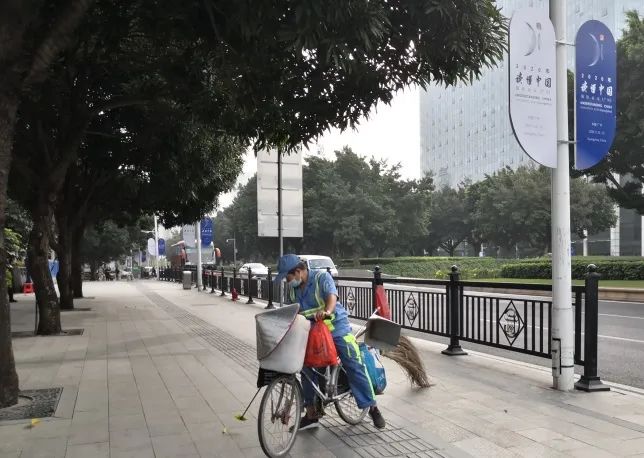 在人行道上,会展片区片长雷超勇正在巡逻。从湖南耒阳来到广州,他一直未离开过这个城市。在海珠区城管和执法局工作16年的他,对于节假日、大型活动的保洁工作已安排得有条不紊。此次“读懂中国”国际会议,他增加了20名保洁人员,并提前做好道路、公厕的保洁,力求给与会嘉宾一个干净舒适的环境。
