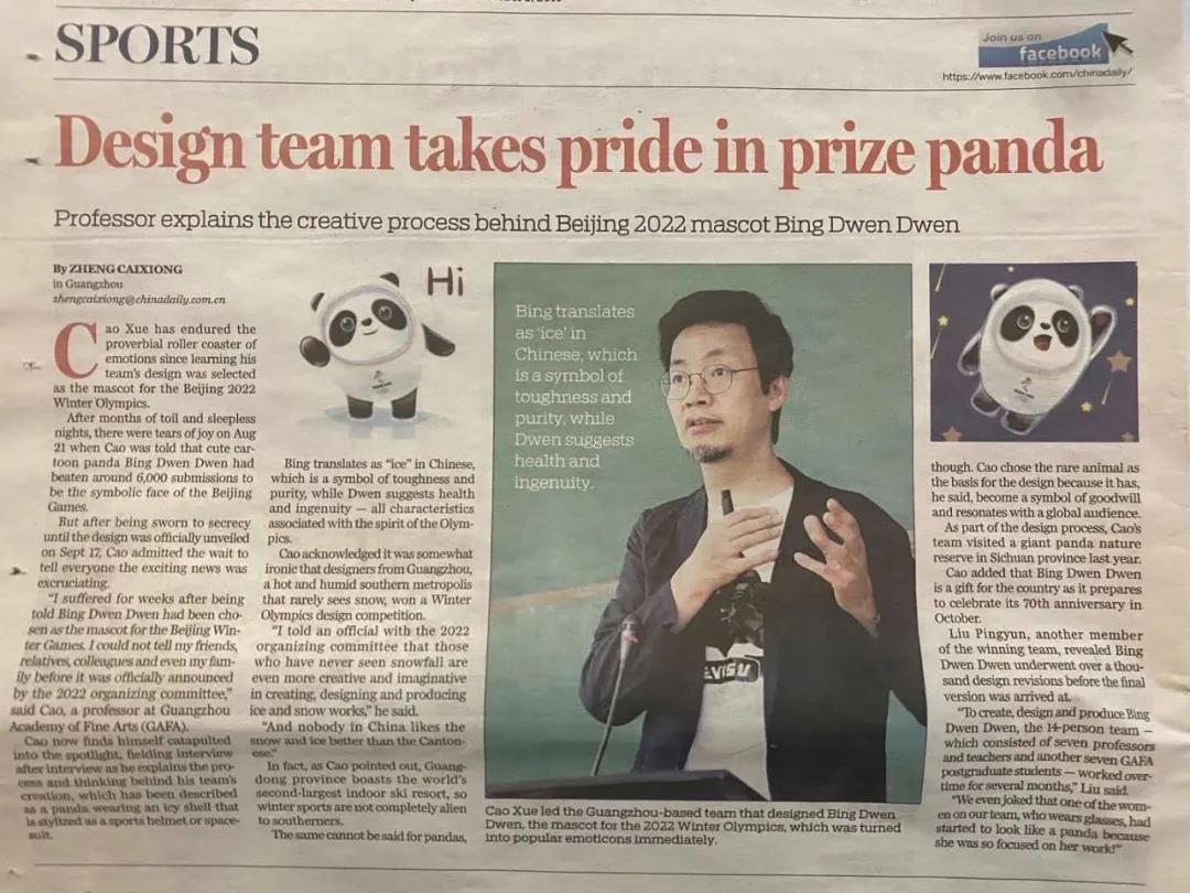 500多个创意、上万张草图、上千次的修改、100多G的3D文件……伴随着这些实实在在的数据,去年9月,曹雪带领广州美术学院师生团队设计的“冰墩墩”,被正式确定为2022年北京冬奥会吉祥物,广州美术学院自此永远地载入了奥林匹克史册。