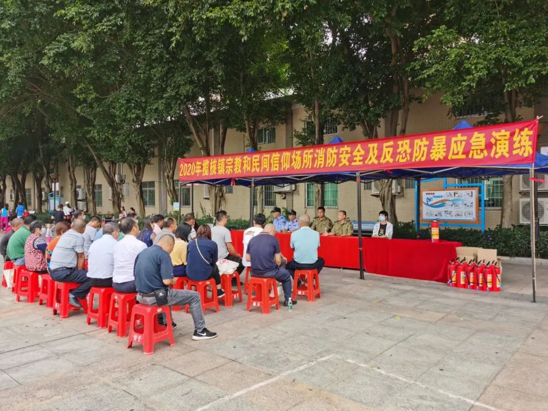 为进一步增强辖区内宗教和民间信仰场所管理员的消防安全意识,提高场所应对突发性事件应急处置能力,11月19日上午,榄核镇统战组联合消防中队、派出所举办消防安全暨反恐防暴应急演练,各村居委民族宗教工作负责人、宗教活动场所和民间信仰场所管理员等近40人参加演练活动。