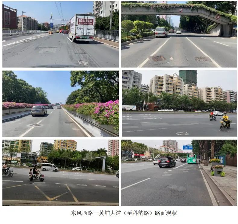 目前道路机动车道、慢行系统品质较高,整体道路景观风貌较好。增埗桥-西场立交-流花湖机动车道出现坑槽、网裂,桥面病害较多,相信经过此次升级改造会有一个崭新的面貌。