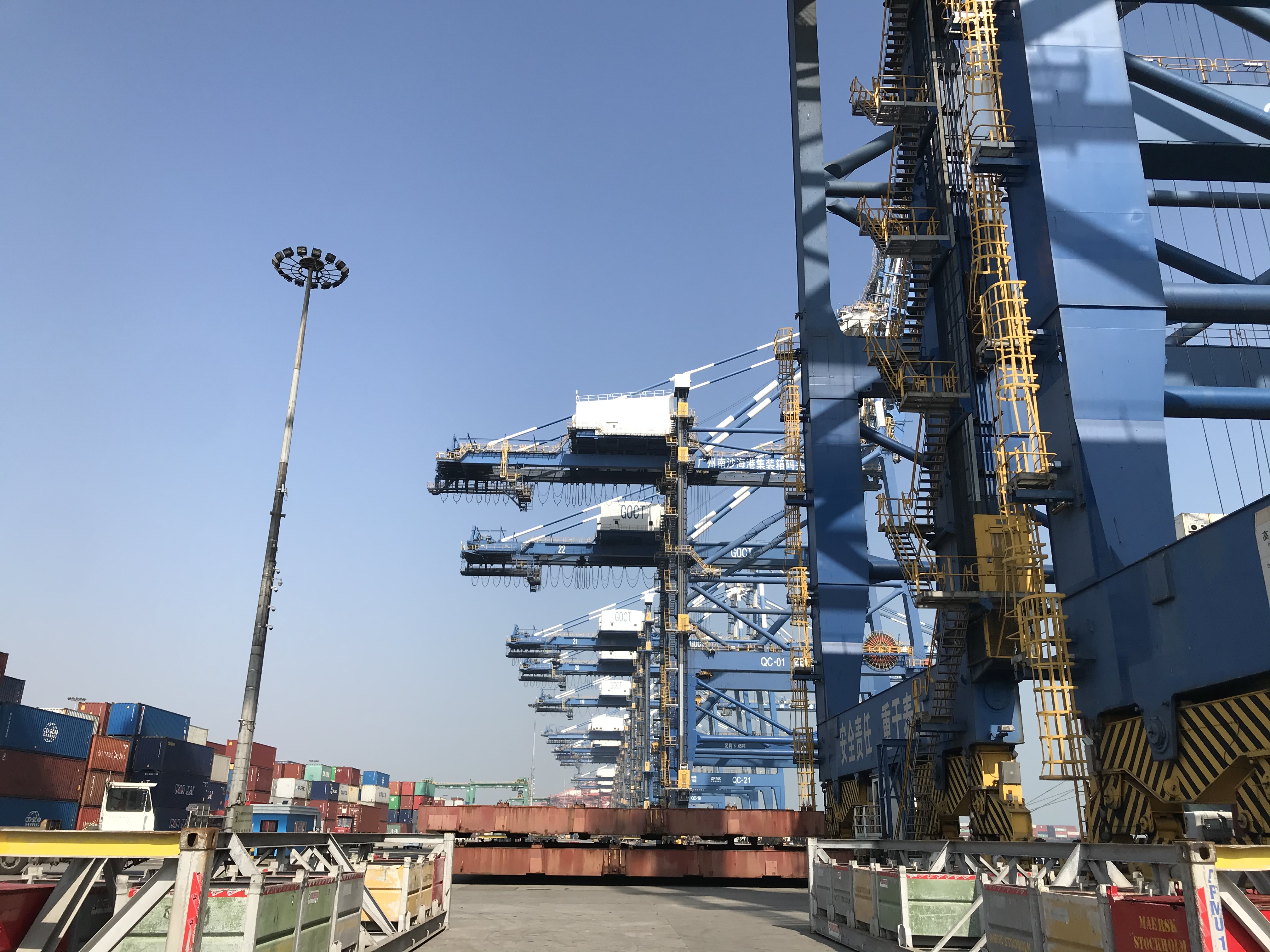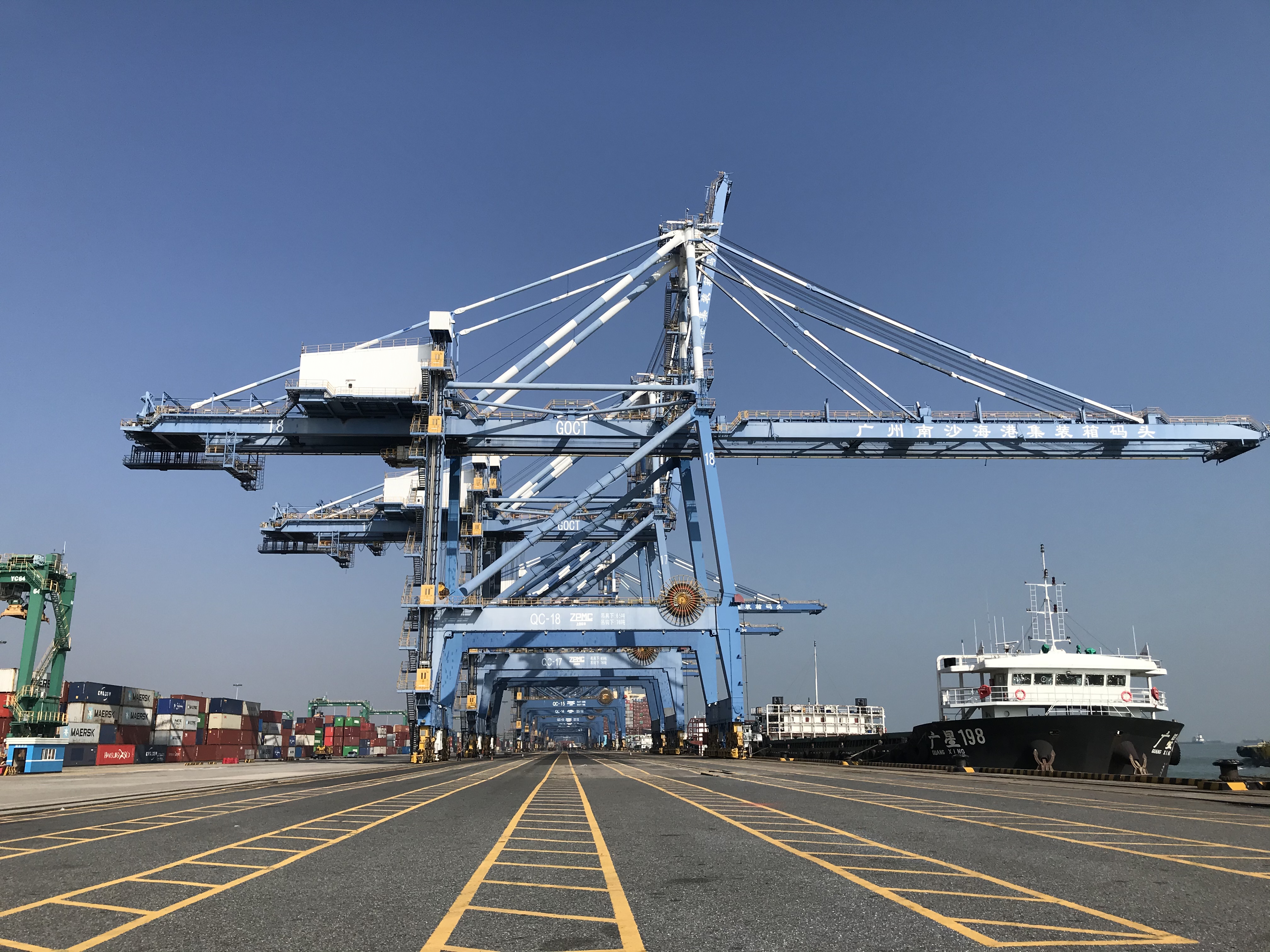 11月25日一大早,记者来到位于广州市南沙区的广州港南沙二期码头,一艘长达335米、能够承载10万吨级、1.5万个标准箱的大货轮正停泊在港口,等待拖车将后方堆场的集装箱一个个运到码头前沿,再通过桥吊装置进行装船。