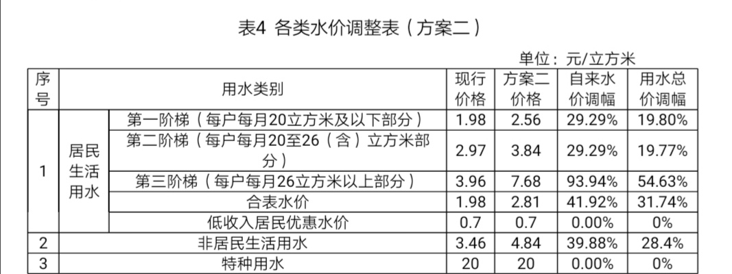 非居民生活用水收费标准调整为4.84元/立方米,特种用水价格维持20元/立方米。