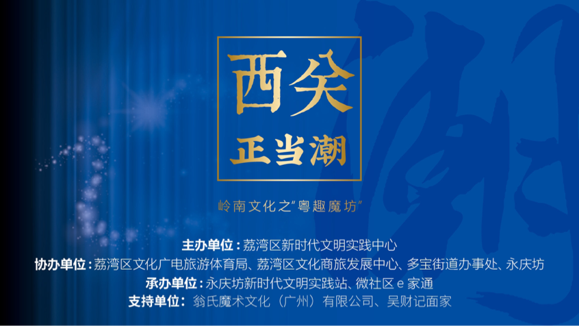 据了解,本次活动由荔湾区新时代文明实践中心主办,荔湾区文化广电旅游体育局、荔湾区文化商旅发展中心、多宝街道办事处协办,永庆坊新时代文明实践站、微社区e家通承办。活动旨在通过互动式体验,充分展现荔湾在岭南文化上的保护和活化,让大众能够走进历史文化街区,认识岭南文化,让游客通过传统文化认识西关、了解西关、爱上西关。