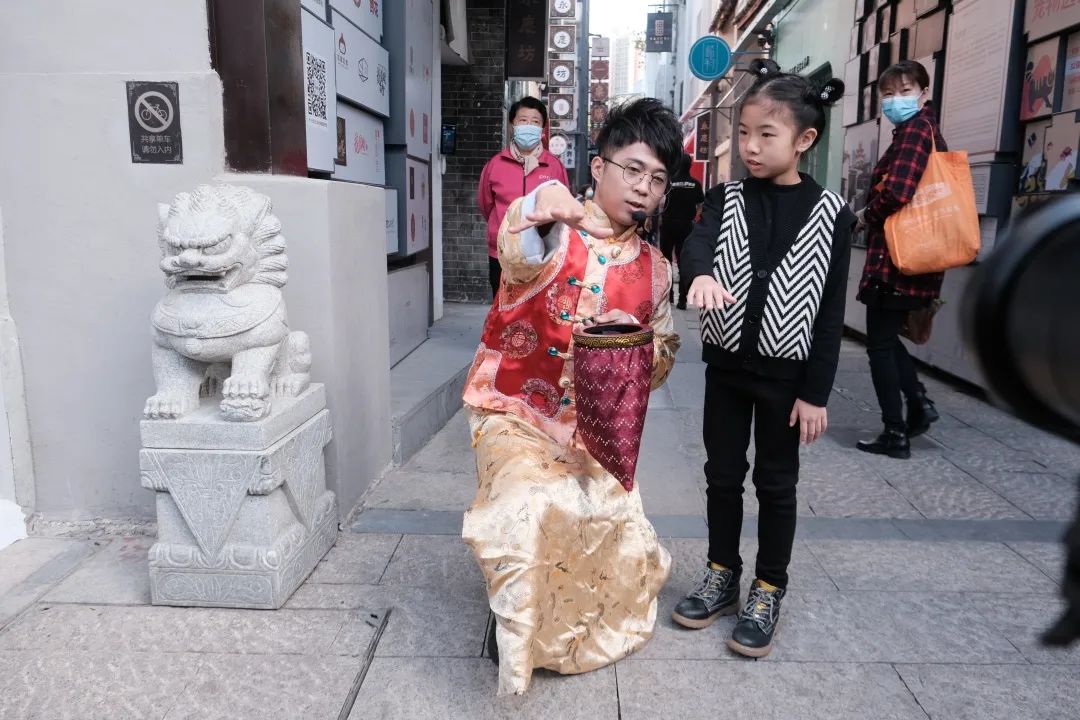 吴财记的炸云吞、皇上皇的腊肠、莲香楼的花生酥、赵家狮的小狮头……在帅气的街头魔术师手中,地道的西关传统美食、精巧的岭南传统工艺品化身“道具”,通过神奇的“魔法”一个接一个地“变”到游客的手里,这令人惊艳的近景魔术,让街上的旅客们耳目一新,大赞神奇。