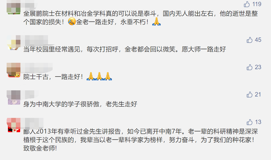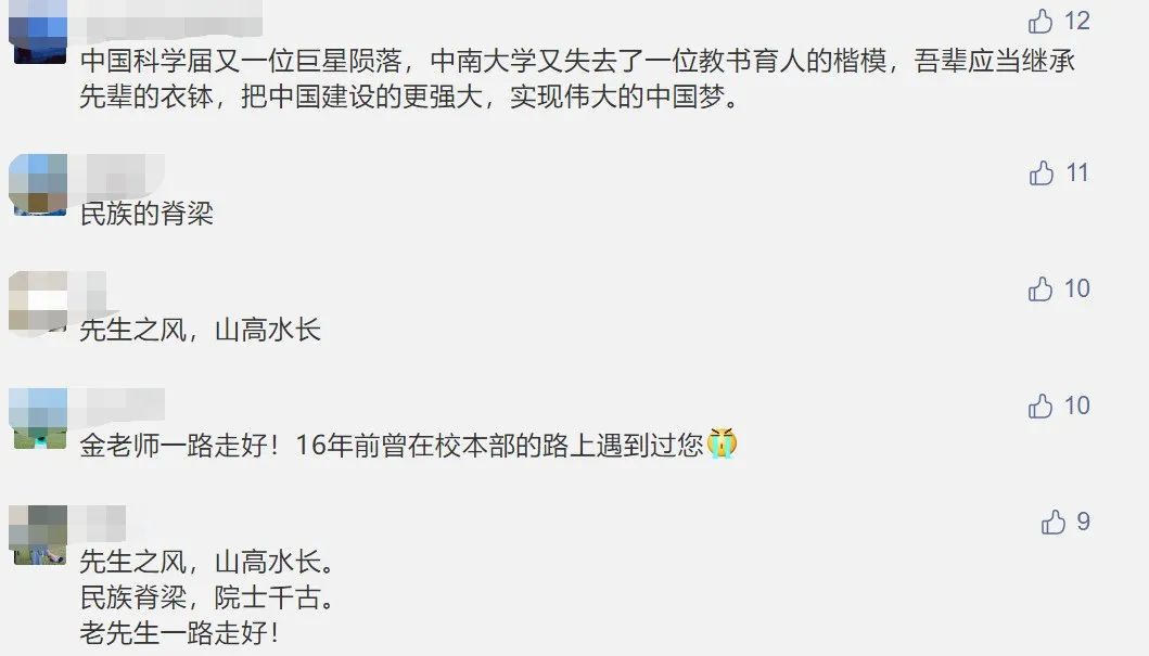 中国科学院院士、中南大学教授金展鹏因病医治无效,