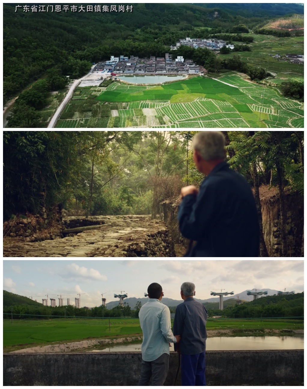 故事的主人公梁锦润的爷爷参加过抗日战争、解放战争、抗美援朝,是一名为新中国建立立下过汗马功劳的老革命,他和战友们抛头颅、洒热血,走的是建立新中国的革命道路;梁锦润在央企中交四航局从事修路架桥工作,从港珠澳大桥工地项目副经理岗位上回到家乡恩平参加开春高速公路建设,他和项目经理张杰华、书记黄景辉一起带领项目部的同事们为当地百姓修筑致富路、幸福路,燃烧着自己的青春,奉献着自己的才干,走的是建设富强中国的发展道路。