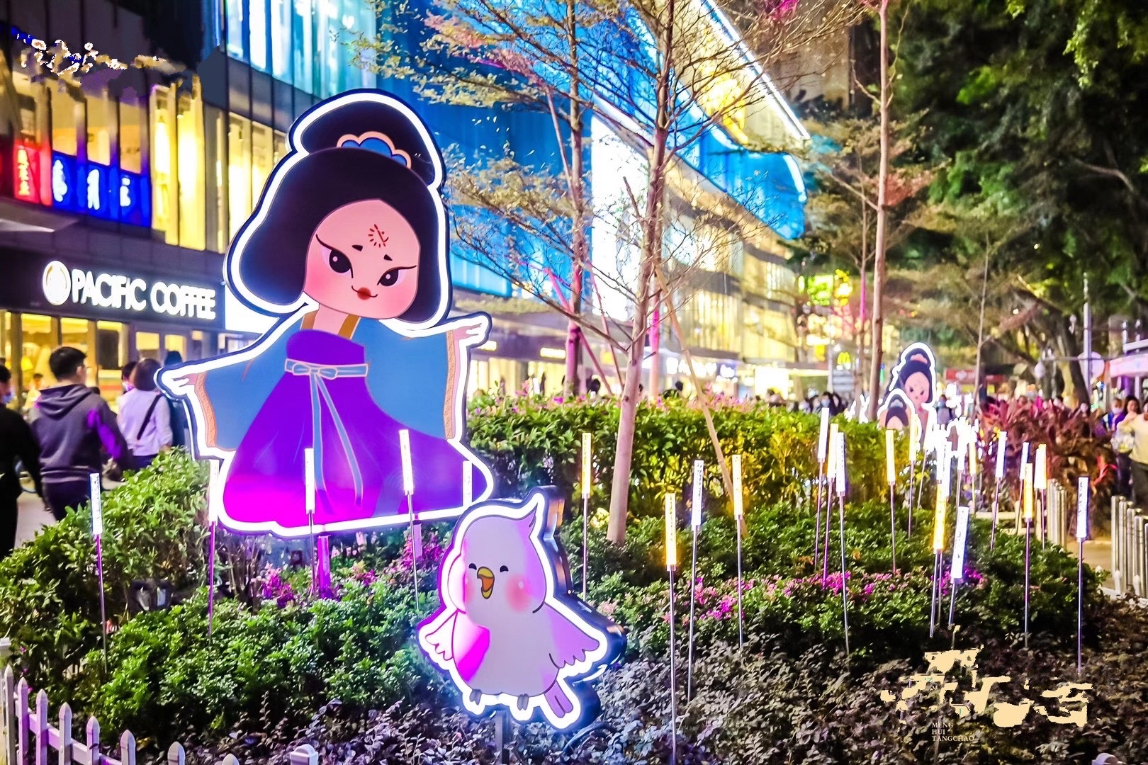 在丽影广场B区外广场,新年灯饰则是“梦回唐朝”大型国潮艺术装置展,此次以影贵妃为主题精心打造大唐时代的宫廷和民间繁荣生活,包括有皇家礼遇、吟唱唐宋诗词、千年宫廷雅乐、瑰丽的霓裳乐舞、繁华东西市集等九大情景,带来一次沉浸式体验的极致享受。