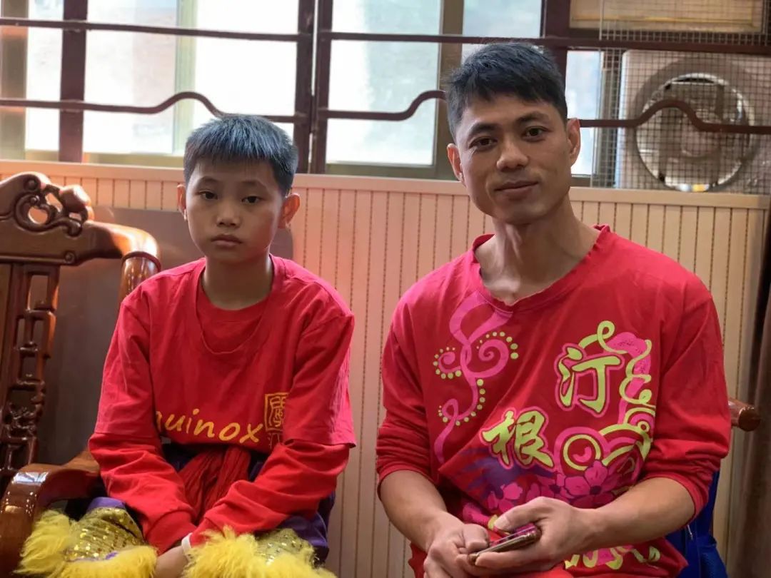 汀根龙狮团主教练陈志彬和儿子陈健洛