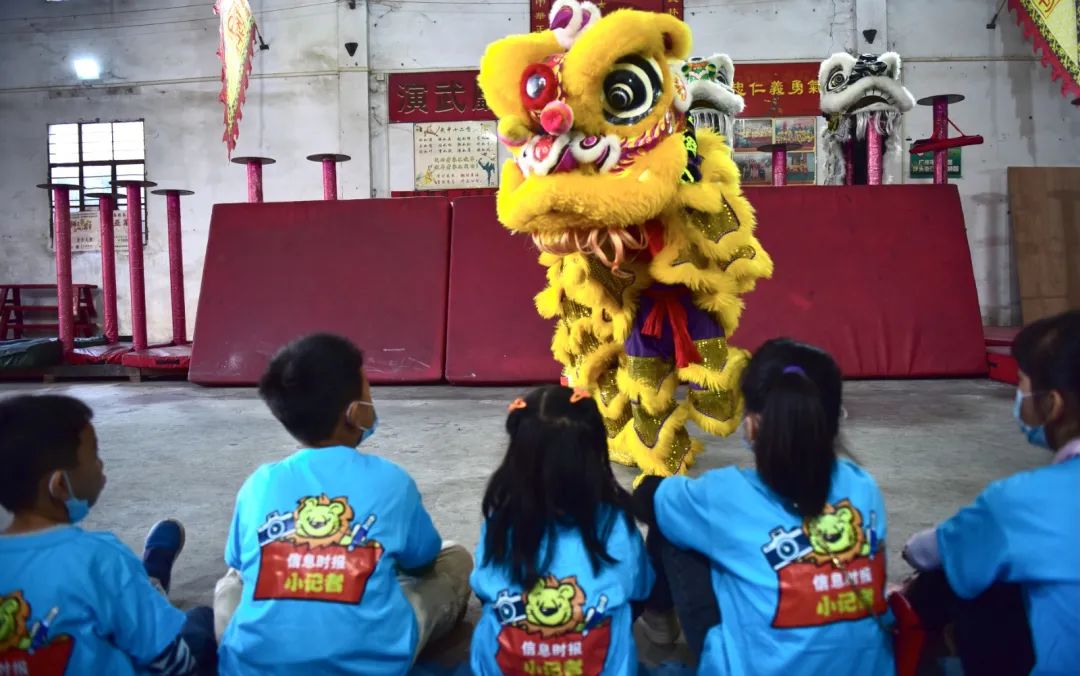 11月28日上午,沙头街小记者团第二期正式成立,来自沙头辖区的15位小朋友穿着小记者服,走进汀根龙狮团,观看精彩的龙狮表演,在番禺民俗专家梁谋和龙狮团教练的讲述里,学习传统沙头龙狮文化。
