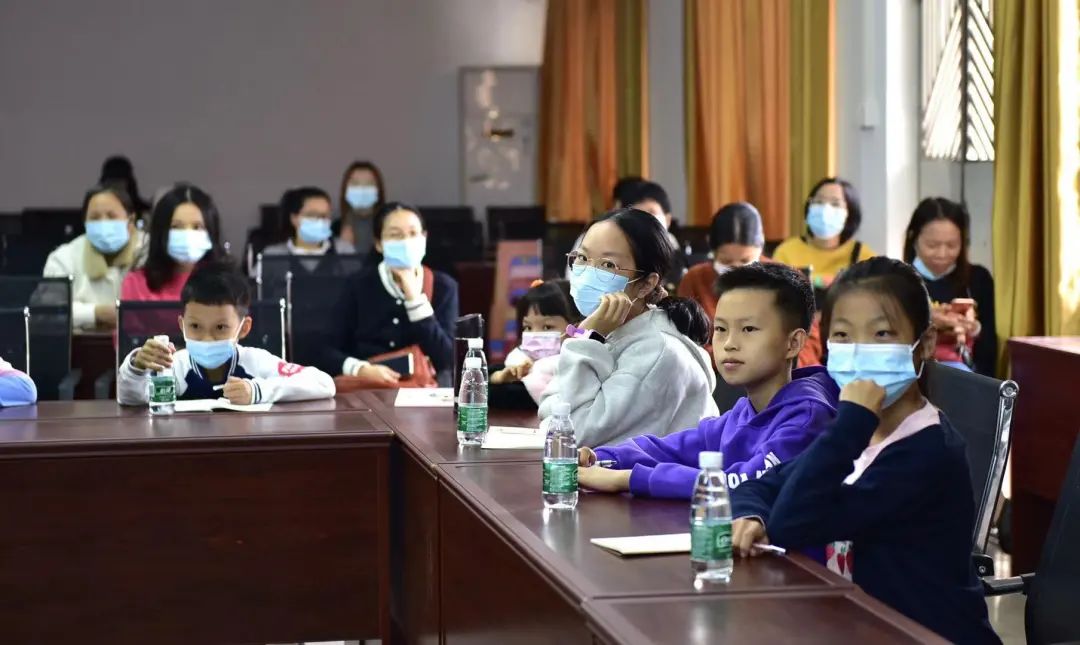 观看表演的小记者和家长