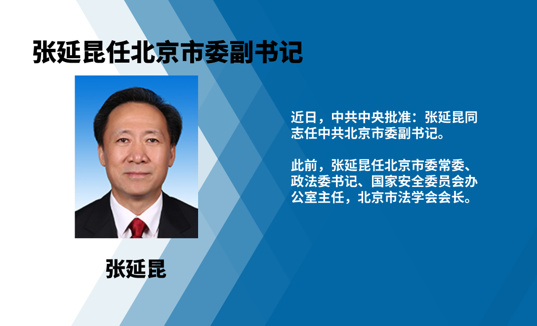11月26日媒体报道,近日,中共中央批准:张延昆同志任中共北京市委副书记。