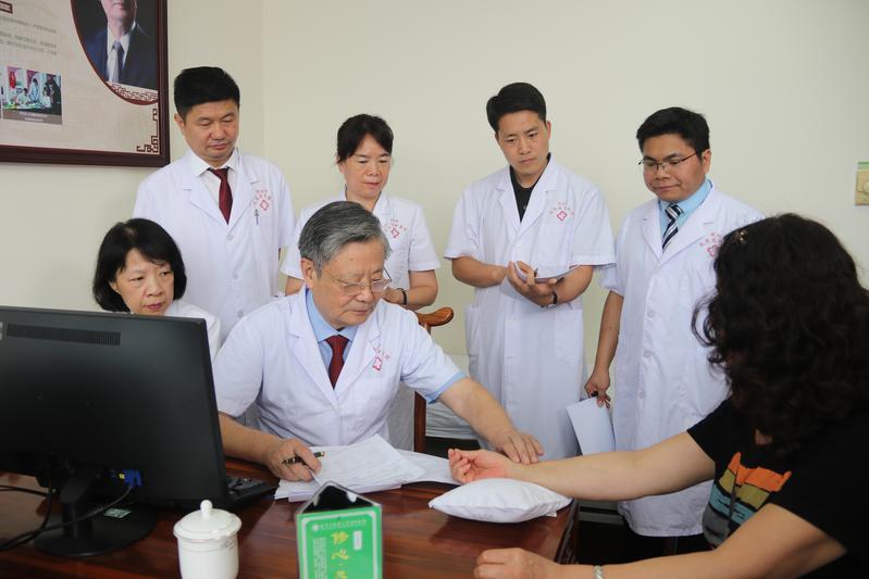 ▲中国工程院院士、国医大师王琦带领团队给患者看诊。