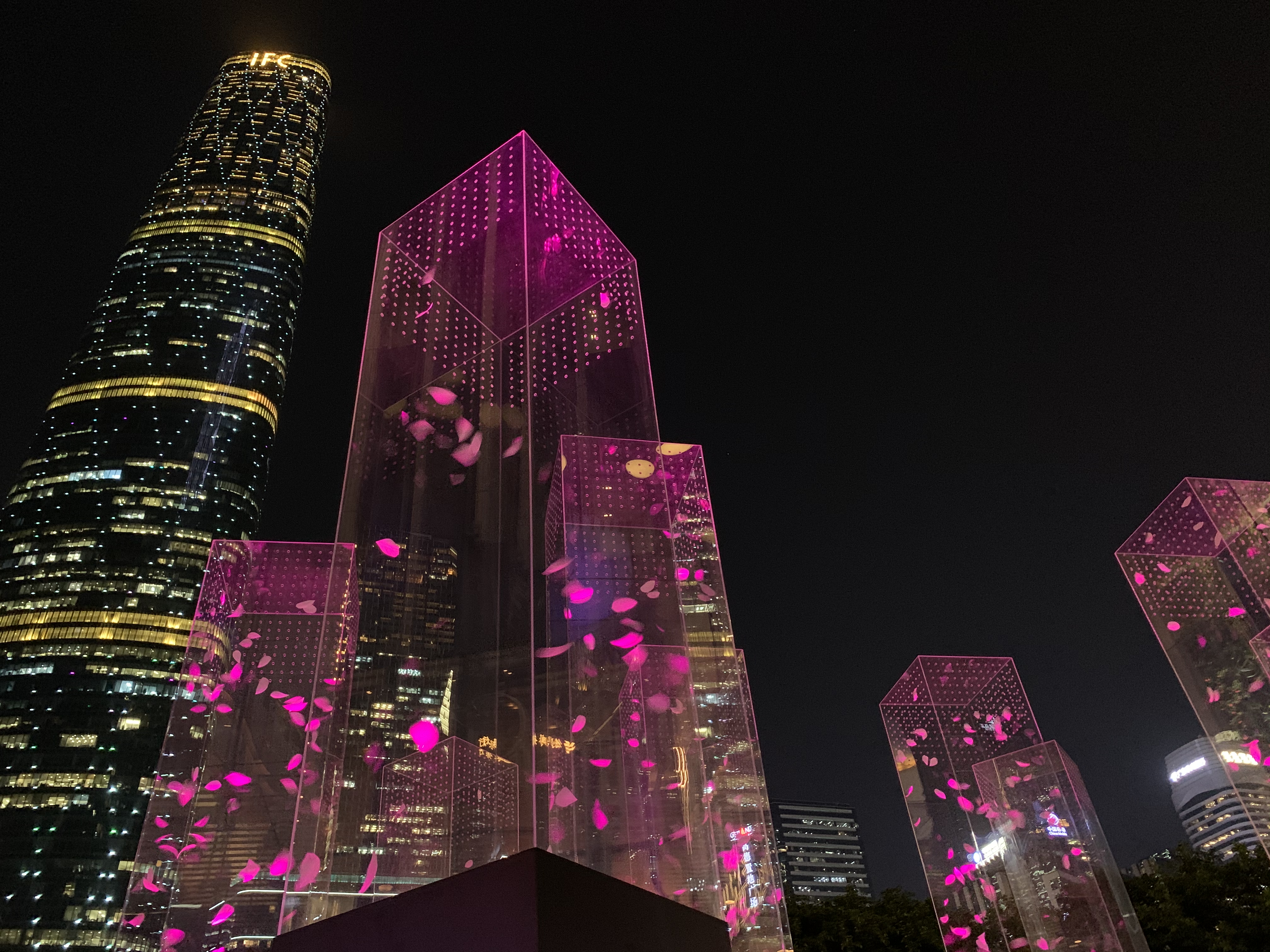 廣州 K11新年燈飾也正式亮燈,在首層西門外,可以欣賞到國際三大燈光節之一的法國里昂燈光節獲獎作品《NJÖRD風之靈》多媒體裝置,在羽毛漫天飛舞的透明立柱之間,感受富有詩意的冬日氛圍。