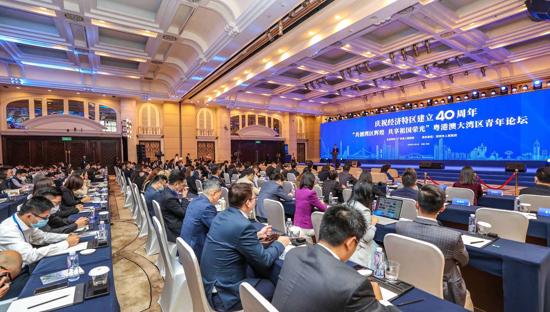 12月1日,慶祝經濟特區建立40周年「共創灣區輝煌 共享祖國榮光」粵港澳大灣區青年論壇在深圳舉行。論壇旨在深入貫徹落實習近平總書記出席深圳經濟特區建立40周年慶祝大會和視察廣東重要講話、重要指示精神,全面準確貫徹「一國兩制」基本方針,凝聚粵港澳三地民心和青年力量,共建粵港澳大灣區。全國政協副主席梁振英作主旨演講,國務院港澳辦副主任黃柳權,省委副書記、深圳市委書記王偉中,副省長張新致辭。中山大學黨委書記陳春聲、市政協主席林潔出席。